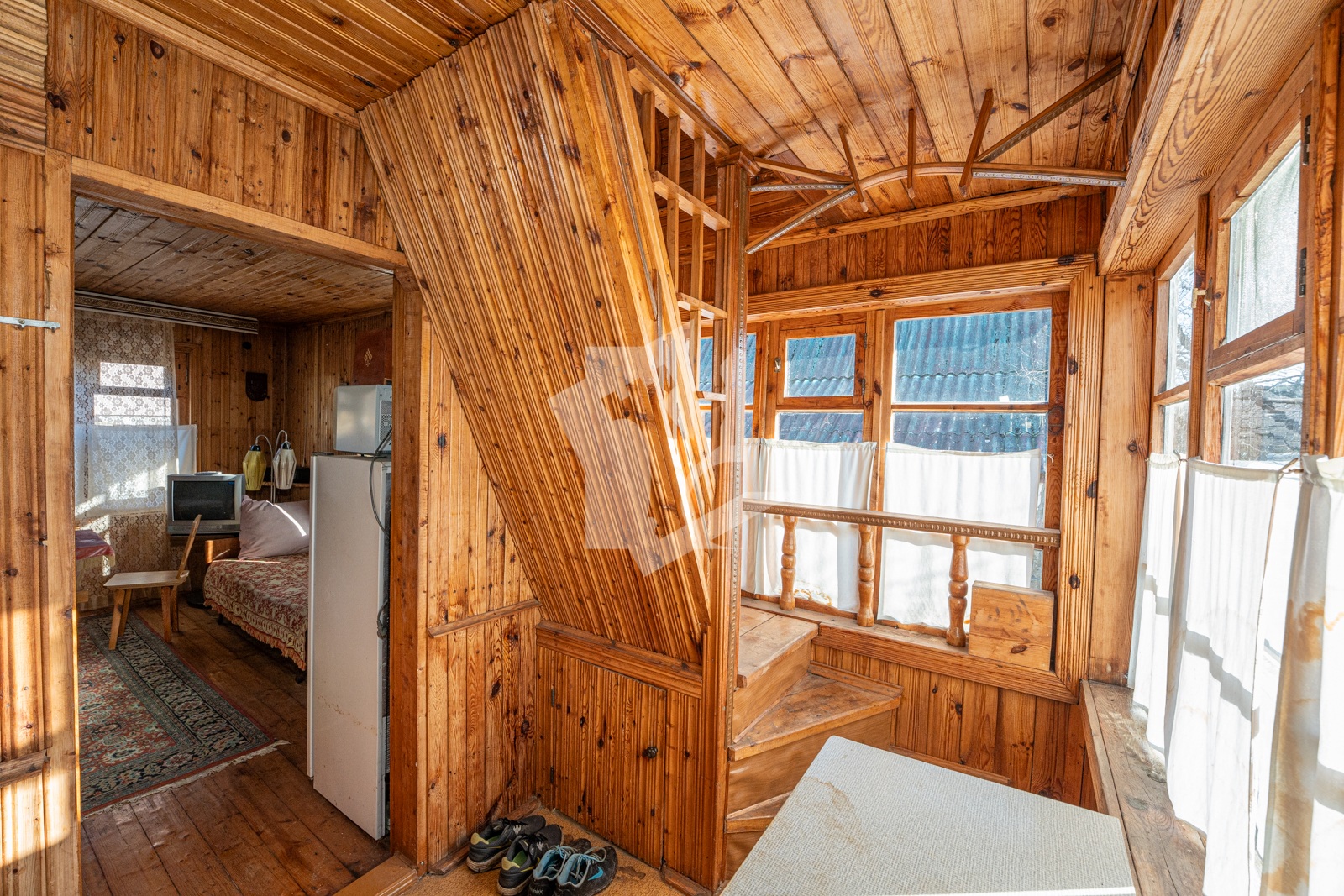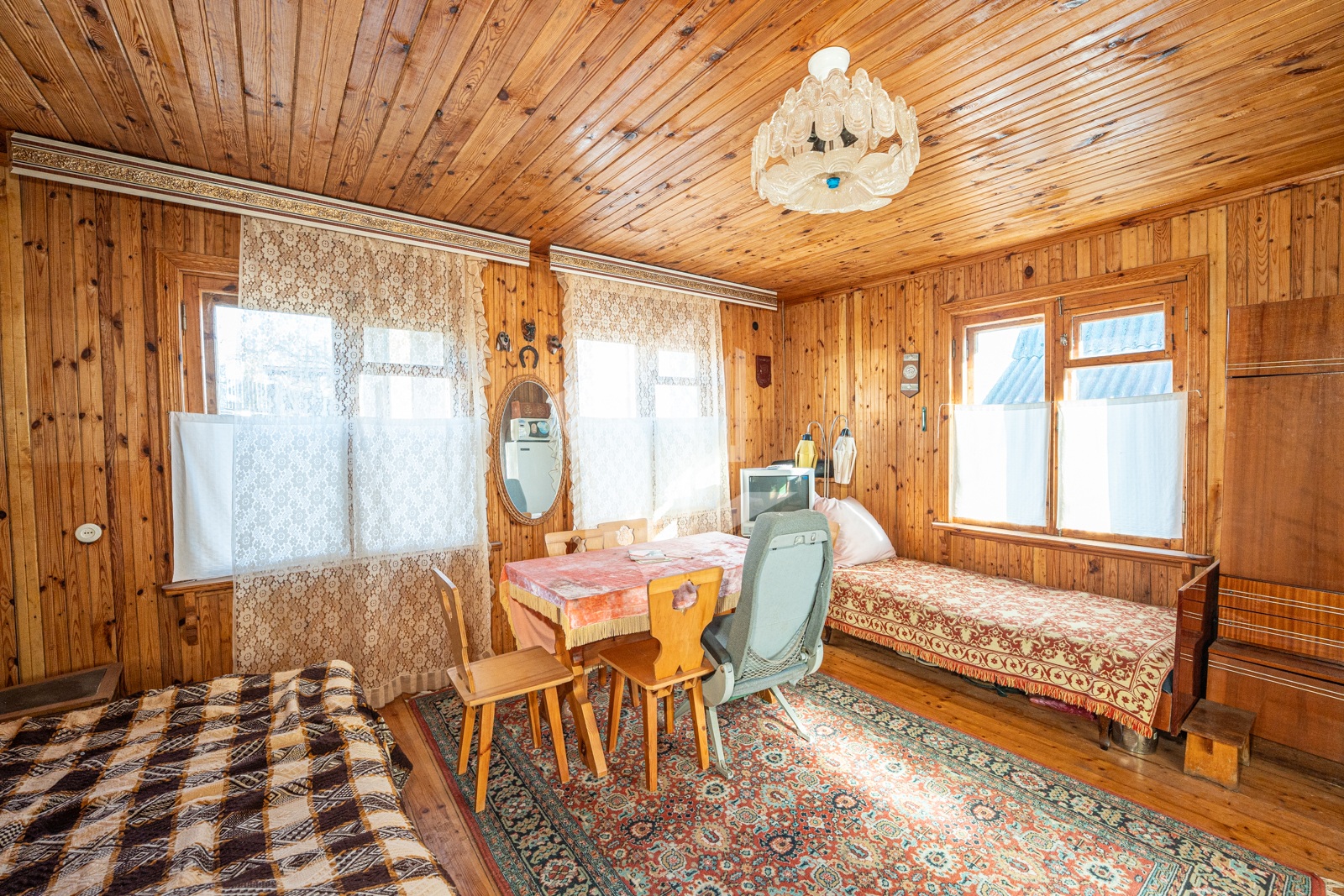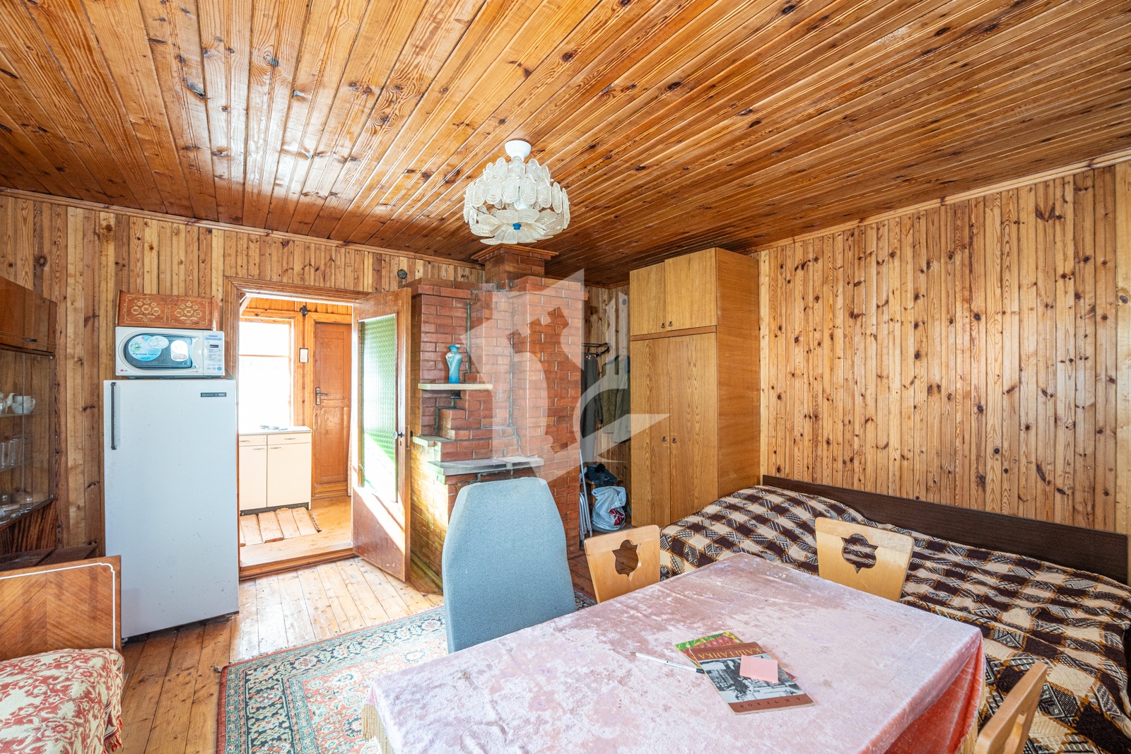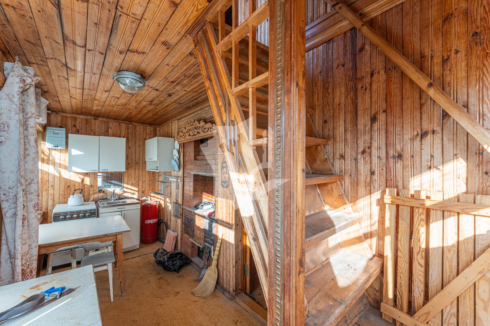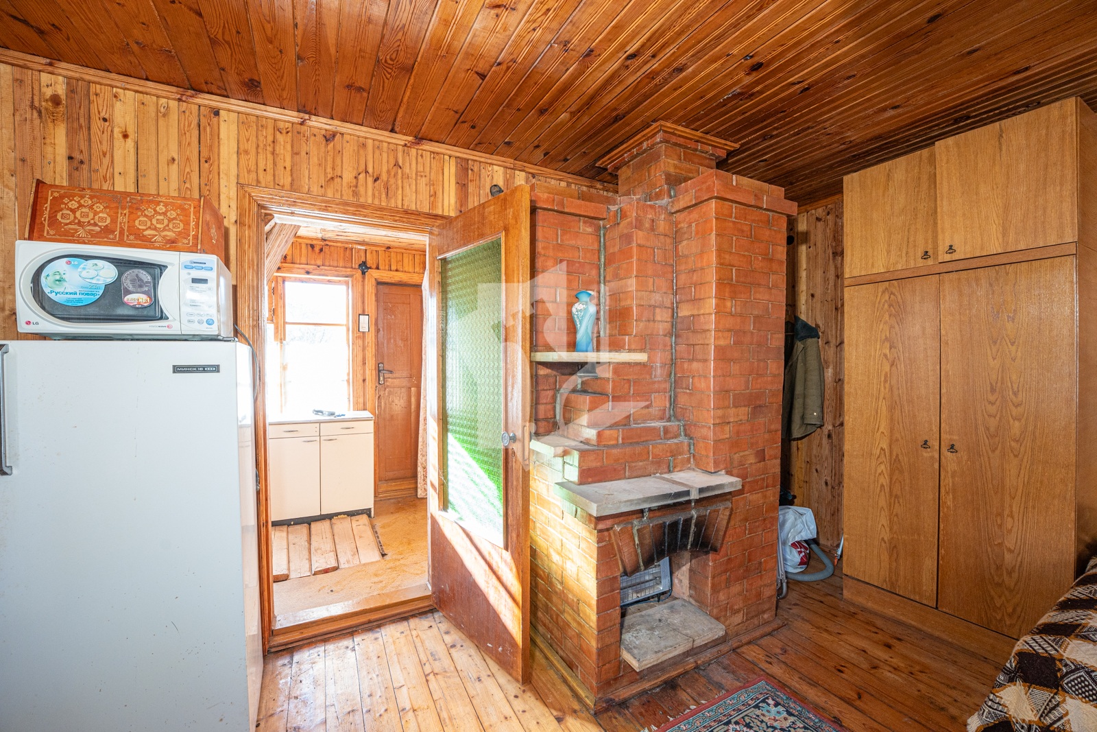 Добротный сухой дом в два этажа общей площадью почти 60 кв. м с гостиной, спальней и кухней, в основе которого настоящий сруб со специальной пропиткой, обшитый изнутри и снаружи деревом. Печь с камином из специального огнеупорного кирпича в гостиной, мебель, газовая плита, холодильник, печь СВЧ, кухонная мойка с раковиной и электрическим подогревом воды.