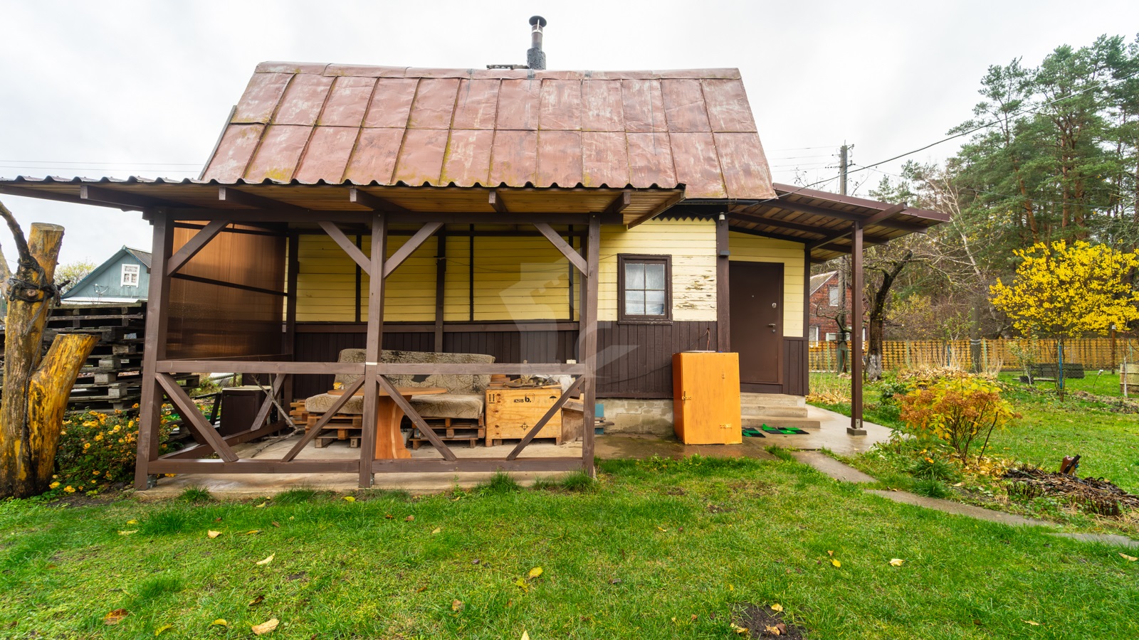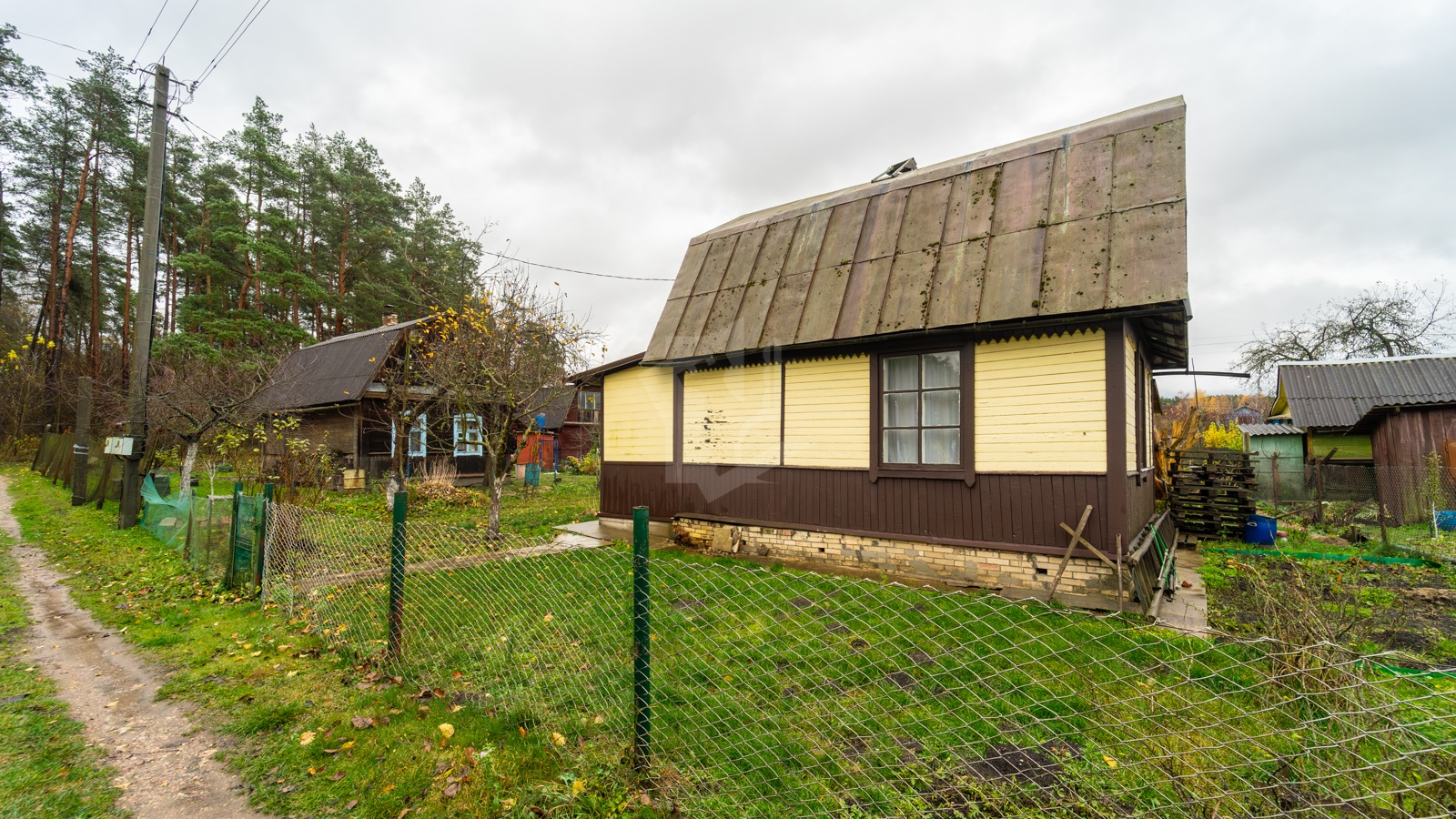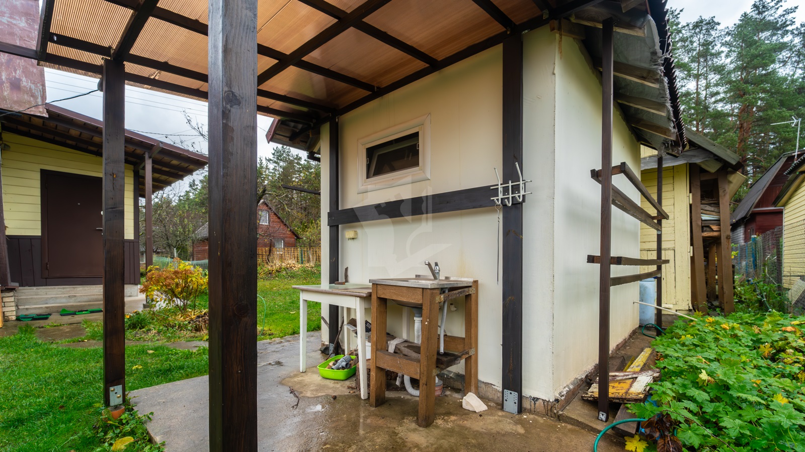 Коммуникации: свет, вода сезонная, туалет на улице, в 100 м от дома имеется колонка с чистой питьевой водой. Земельный участок 5 соток, разработанный, благоустроенный огорожен сеткой-рабицей. Участок благоустроен: разбита клумба, грядки, на участке растут плодовые деревья, ягодные кусты. На дворовой территории имеется сарай для садового инвентаря, уличный туалет, душ. Недалеко от дома - сосновый лес.