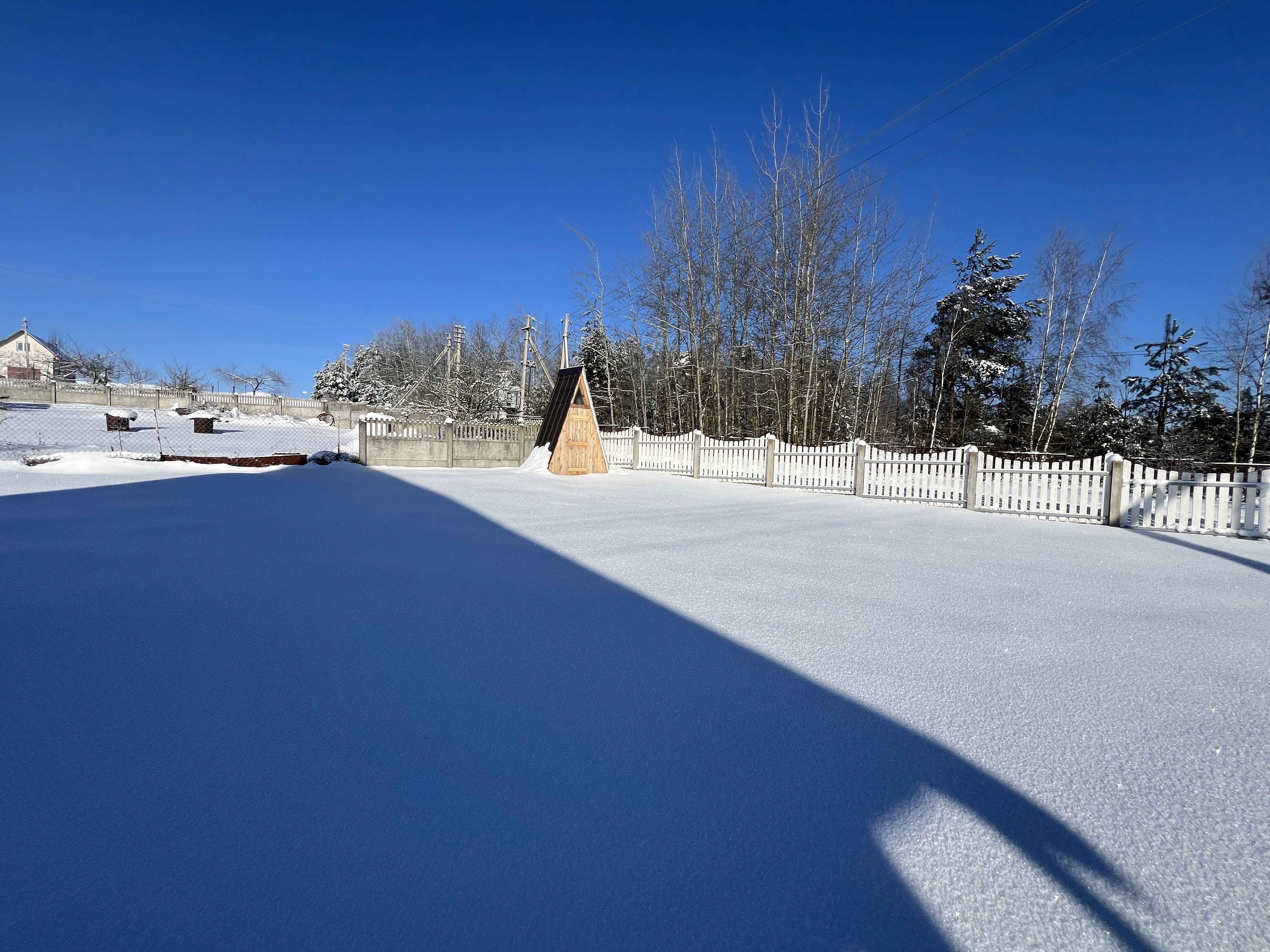 Больше магазинов располагаются в 5-ти минутах езды на автомобиле в г.Жодино. Летом очень зелено и красиво, зимой ограждение радует глаз.