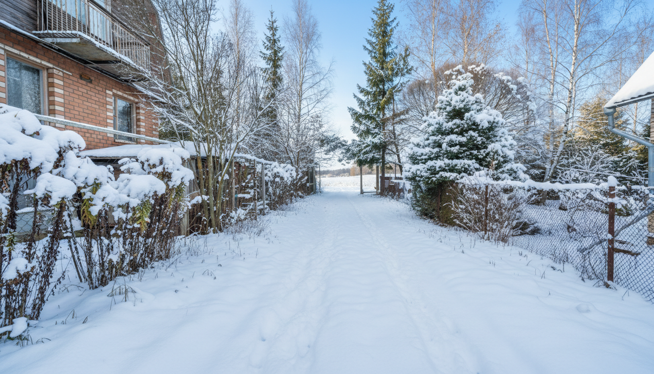 Участок 9 соток, огражден со всех сторон. Есть плодовый сад, много роз и кустарников . Посеян газон. Летом очень зелено и красиво, зимой ограждение радует глаз.