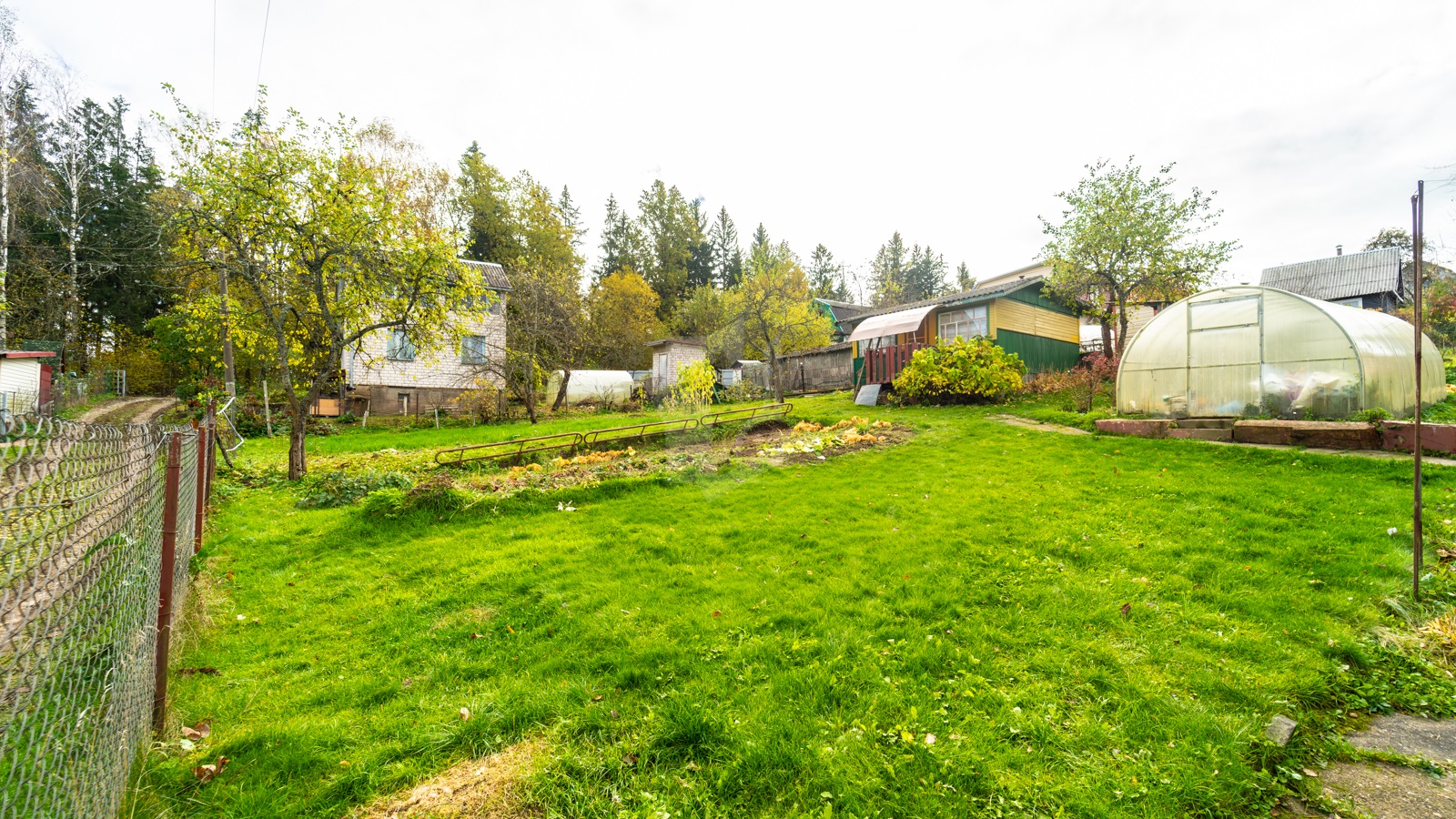 Участок 8,5 соток, огражден со всех сторон. Есть плодовый сад, много роз и кустарников . Посеян газон. Летом очень зелено и красиво, зимой ограждение радует глаз.