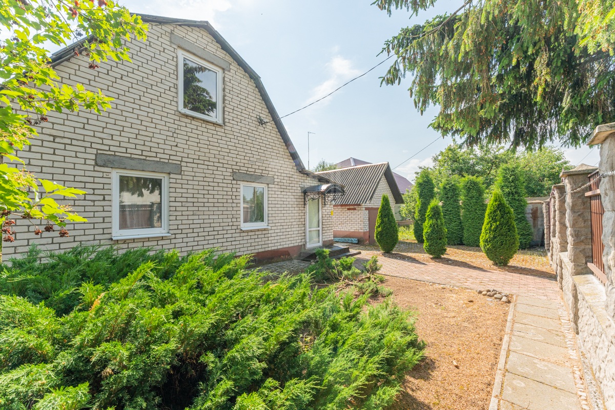 Стены из кирпича , фундамент монолитный ленточный, кровля - шифер. На всех окнах установлены качественные стеклопакеты Salamander.