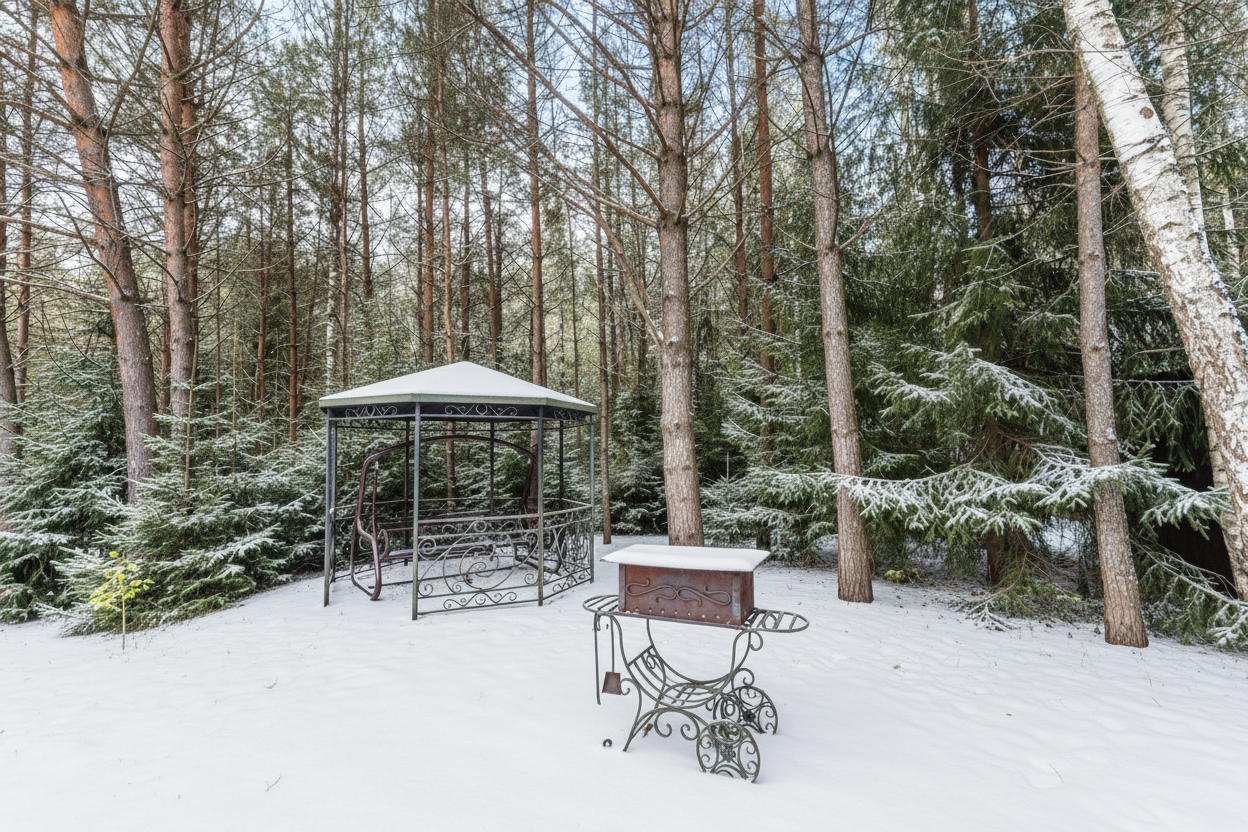 На территории есть летняя беседка для барбекю.