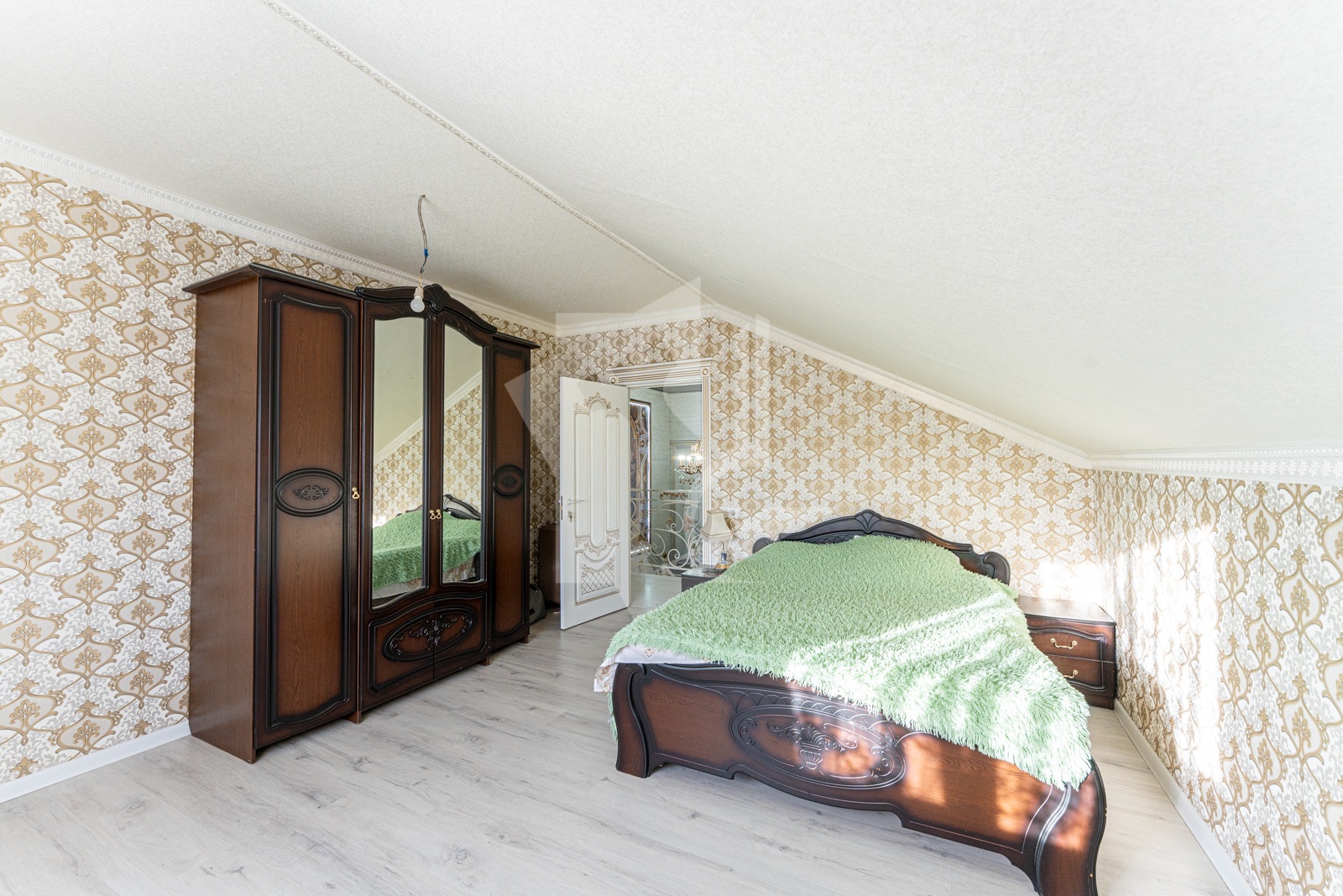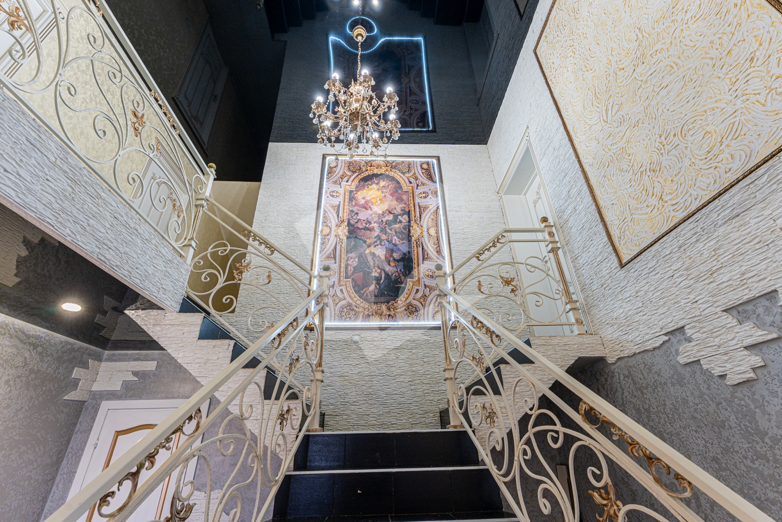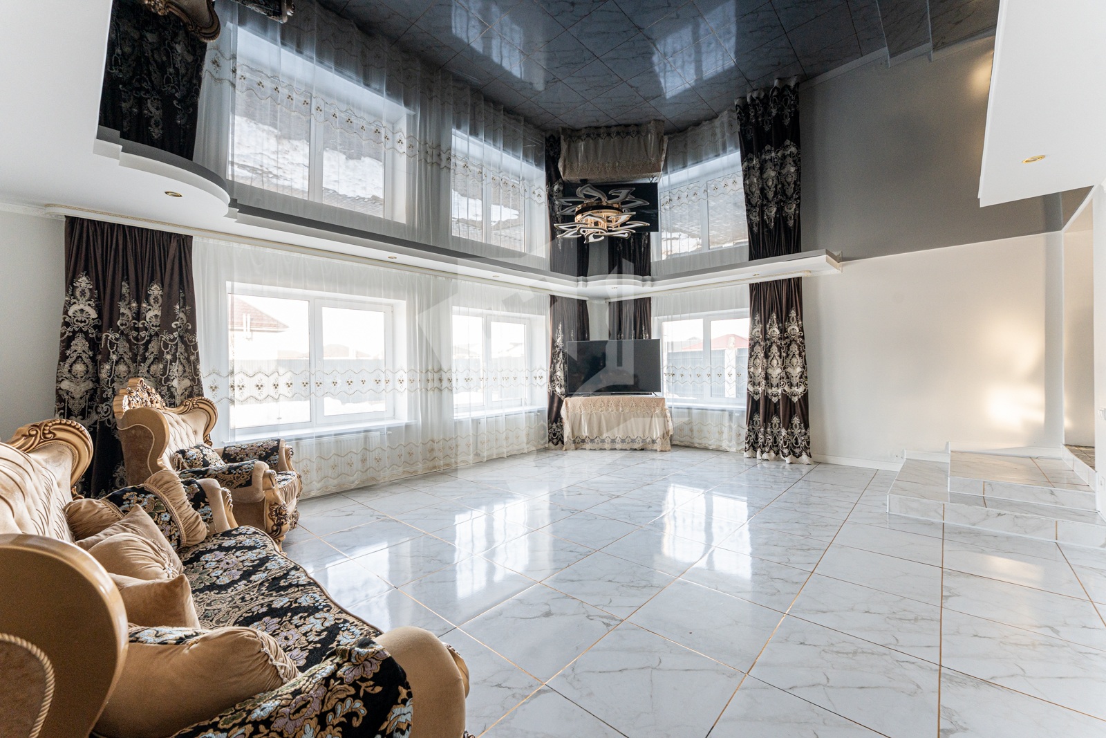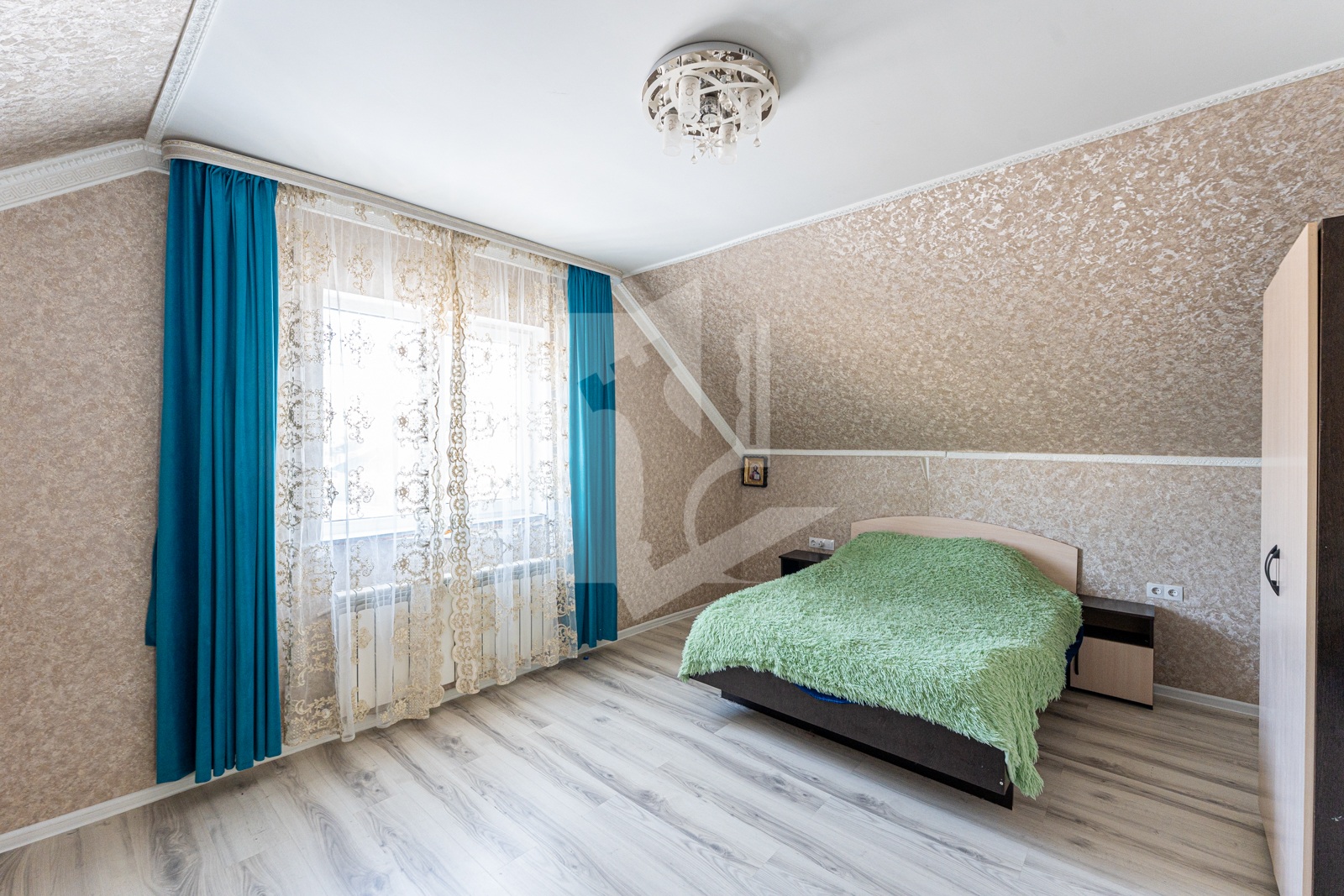 Выполнен хороший ремонт с приятными акцентами в интерьере и кованной лестницей, которая ведет на второй этаж. Ее изысканное оформление добавляет неповторимости этому дому и создает элегантную атмосферу. Установлены стеклопакеты (ПВХ), напольные покрытия: кафель.