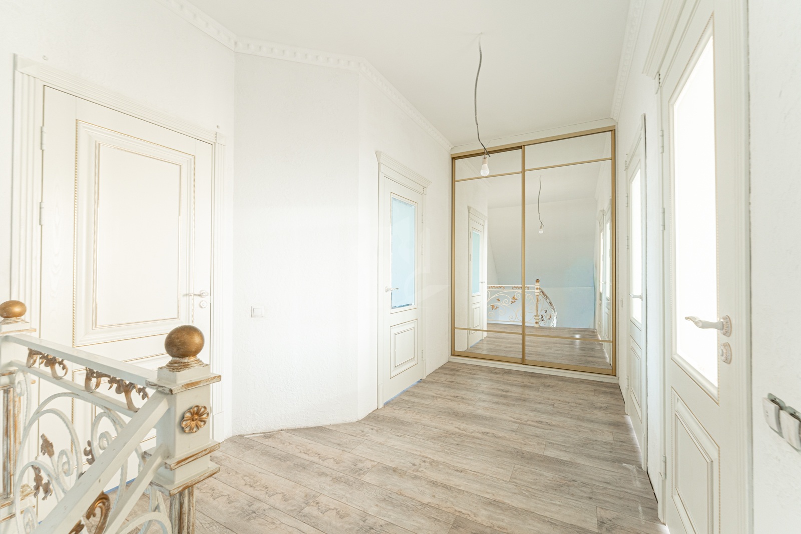 Выполнен хороший ремонт с приятными акцентами в интерьере и кованной лестницей, которая ведет на второй этаж. Ее изысканное оформление добавляет неповторимости этому дому и создает элегантную атмосферу. Установлены стеклопакеты (ПВХ), напольные покрытия: кафель.
