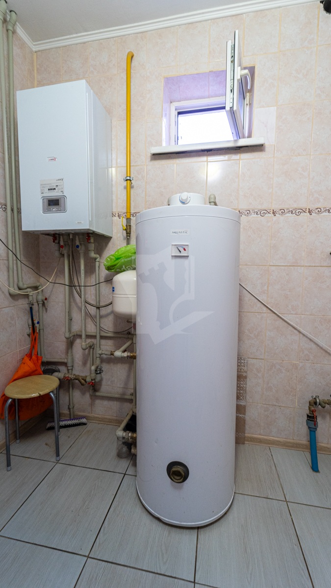 В доме проведены все необходимые коммуникации: канализация местная (кольца), центральный водопровод, газ, двухконтурный котел, бойлер. Отопление дома - от газового котла. Во всех помещениях дома установлены радиаторы. Теплый пол разведен на всей площади первого этажа.