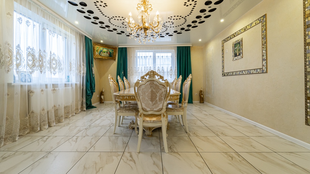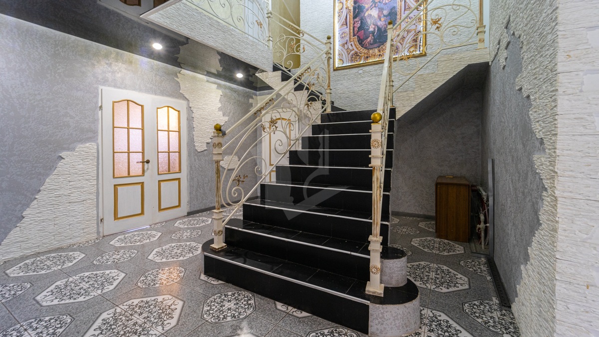 Выполнен хороший ремонт с приятными акцентами в интерьере и кованной лестницей, которая ведет на второй этаж. Ее изысканное оформление добавляет неповторимости этому дому и создает элегантную атмосферу. Установлены стеклопакеты (ПВХ), напольные покрытия: кафель.