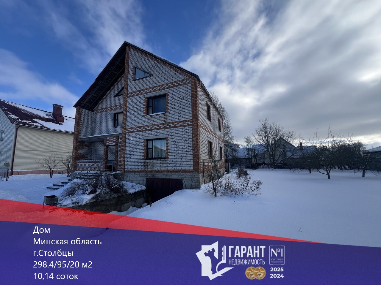Хорошее расположение дома в центре города. Удобное расположение от Минска, всего 40 минут в пути. Хорошие подъездные пути, дороги зимой чистят. Ровный, хороший участок 10 соток с плодовыми деревьями. Доброжелательные соседи.