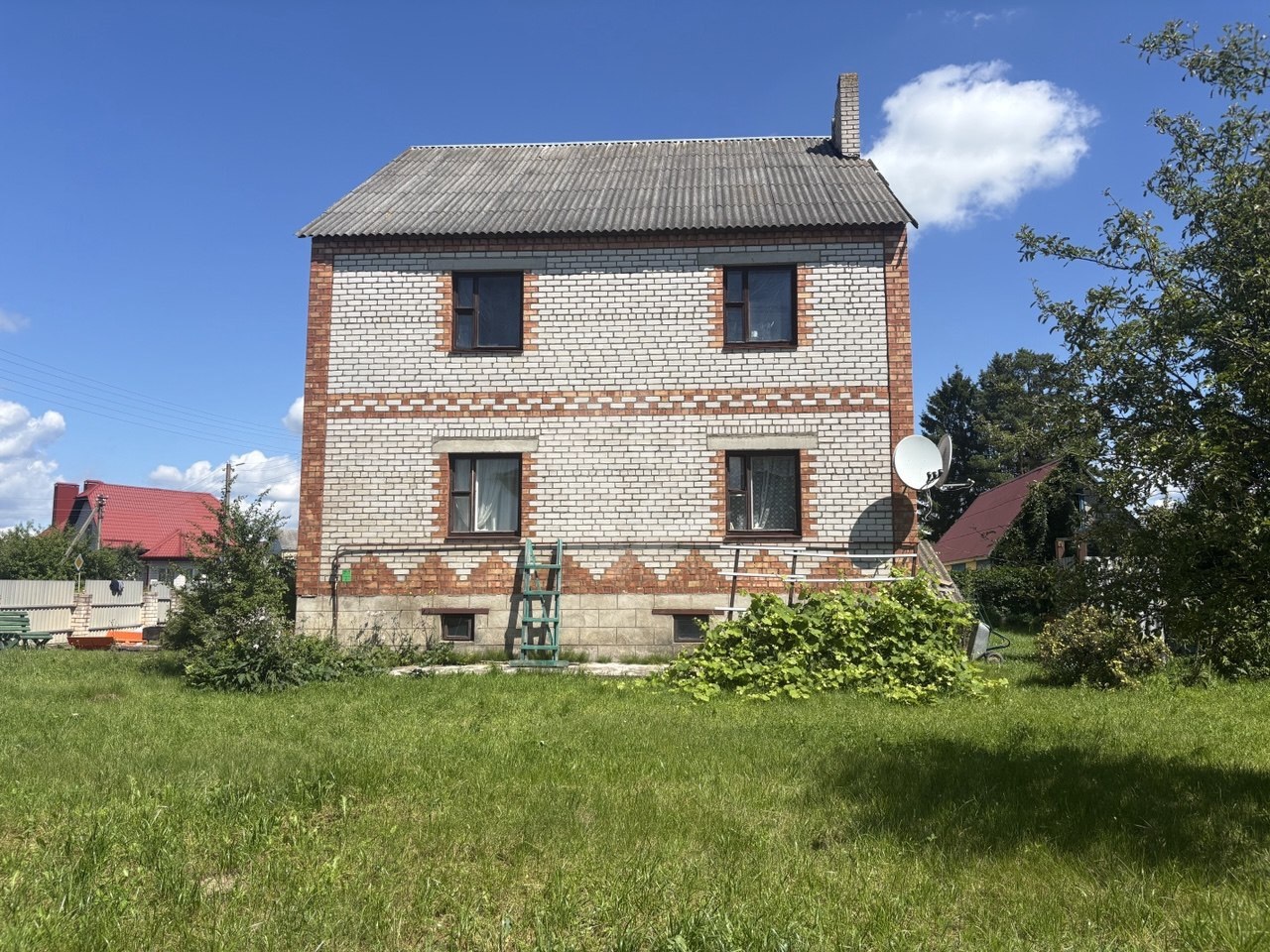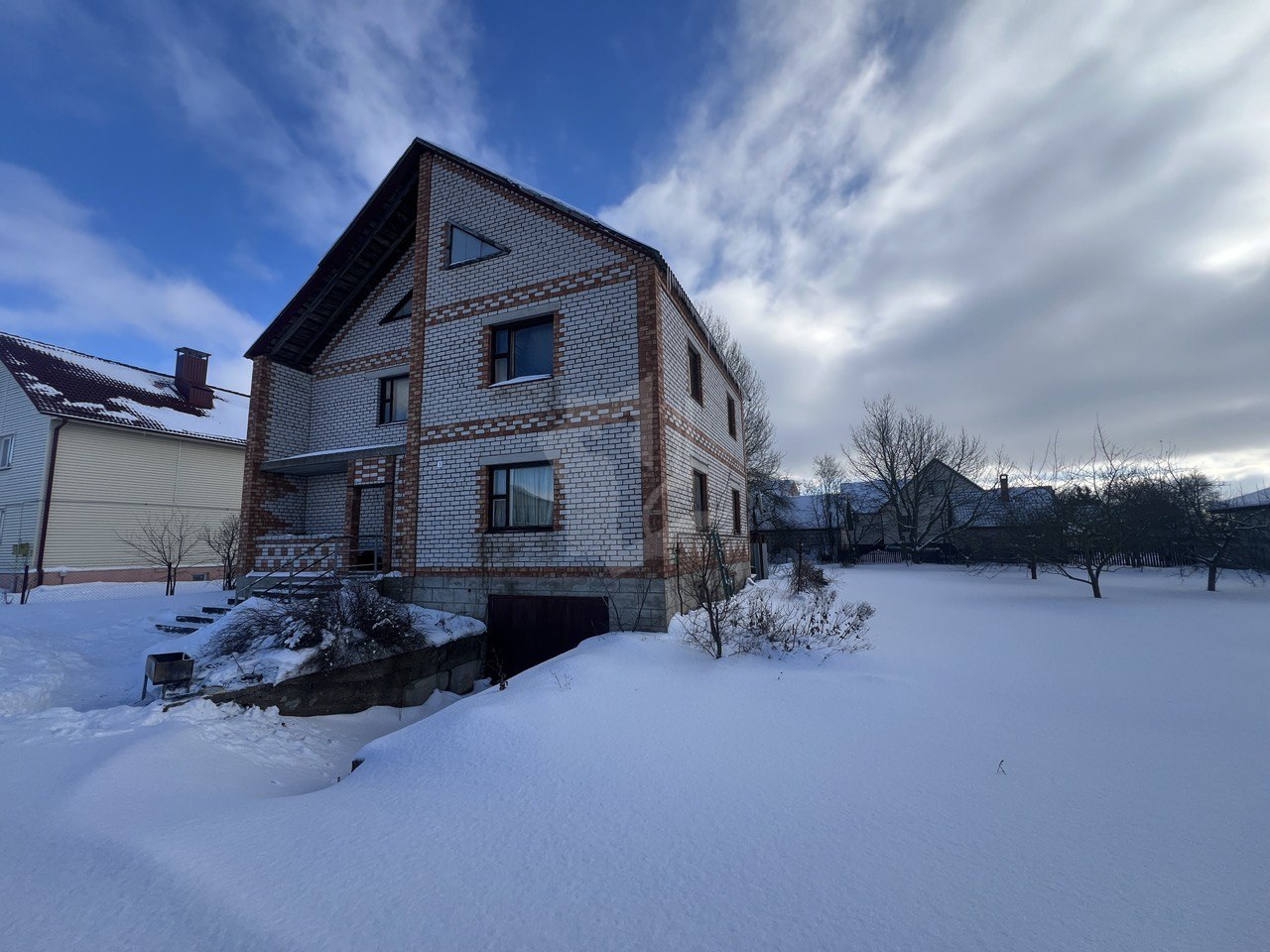 Хороший кирпичный дом, с просторными раздельными комнатами и всеми удобствами в доме. Дом очень теплый, просторная большая кухня. Есть гараж/подвал расположенный по всему периметру дома в котором можно разместить мастерскую.