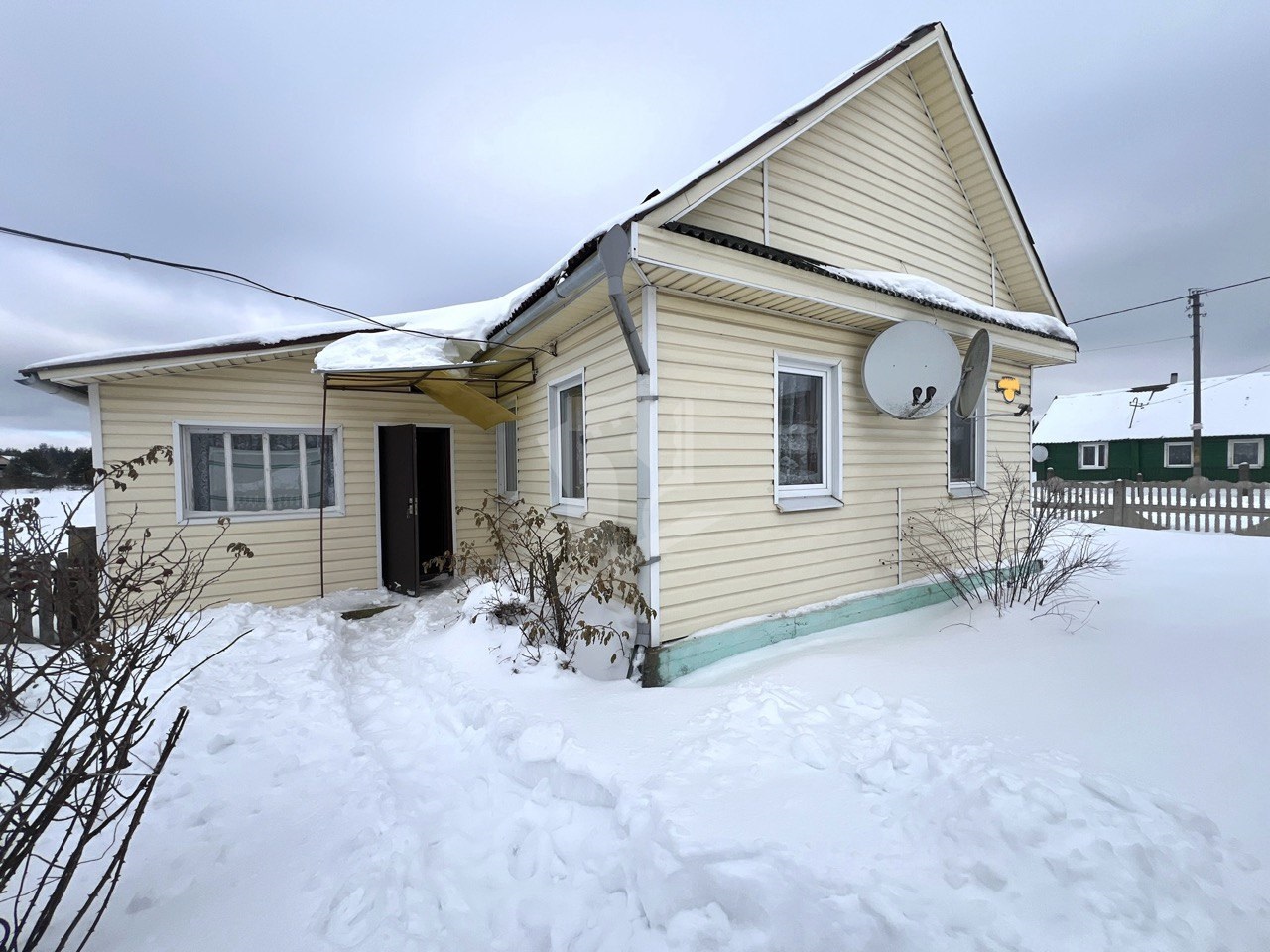 Просторный, очень ухоженный и уютный деревянный дом в деревне. В доме 4 просторных комнаты, большая функциональная кухня, есть вся мебель.