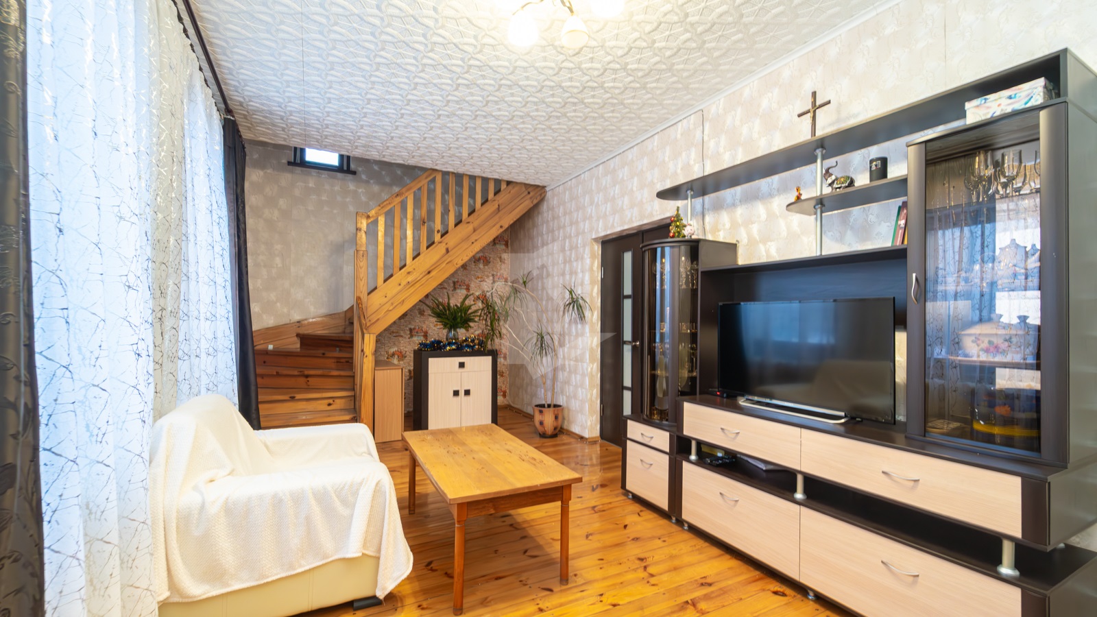 Отопление в доме обеспечивается газовым котлом что позволяет поддерживать комфортную температуру в любое время года.