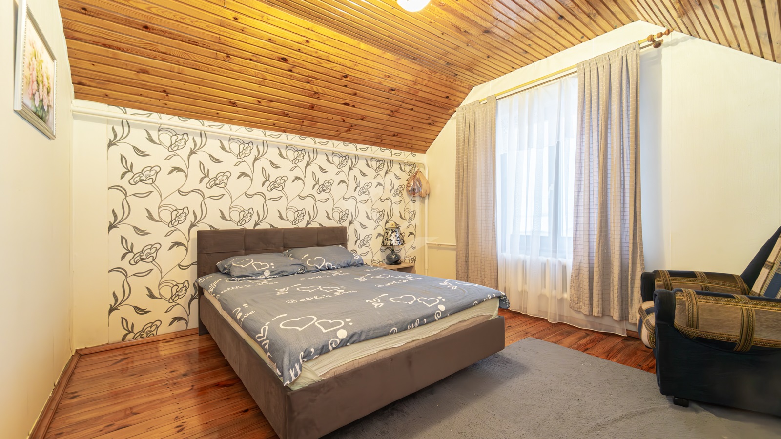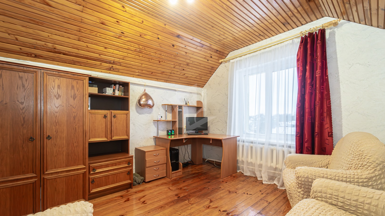 В живописном уголке Гродненского направление, всего в 43 км от Минска, располагается современный дом, построенный в 2002 году, общей площадью 107.7 кв. м. Просторная жилая площадь составляет 53.4 кв. м, и кухня 11.5 кв. м становится центром семейных встреч и уютных вечеров. Интерьер дома оформлен в современном стиле, с акцентом на комфорт и удобство.