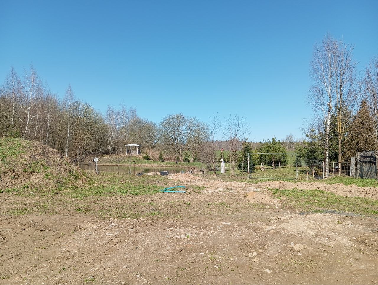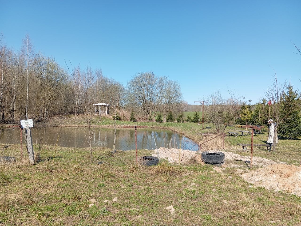 За забором пруд с беседкой прямо. Можно жарить шашлык, можно просто сидеть и делать вид, что вы на рыбалке. Главное — не надо никуда идти, всё под боком.