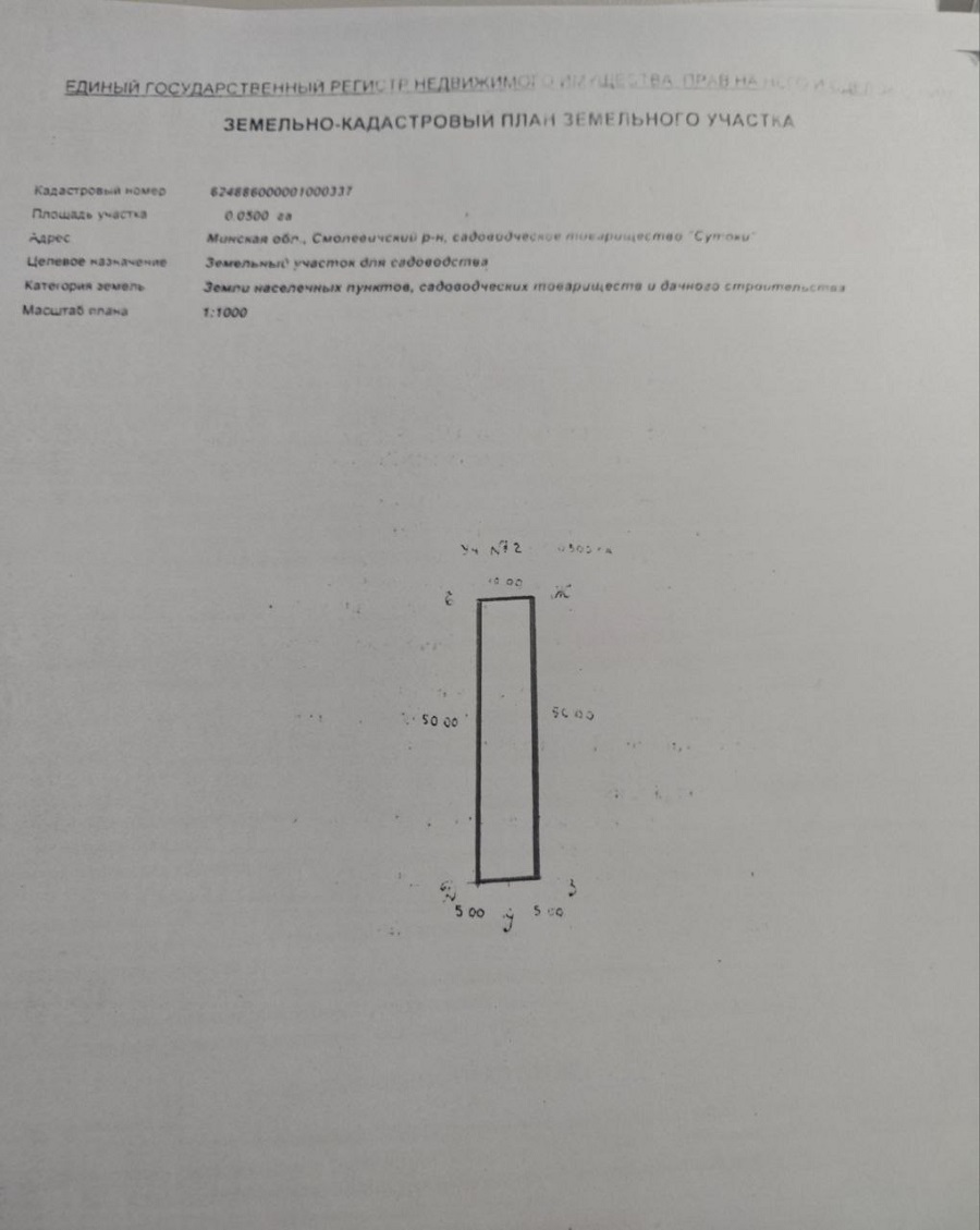 Земельный участок площадью 5 соток (0,05га) расположен в благоустроенном садовом товариществе по Московскому направлению из Минска.