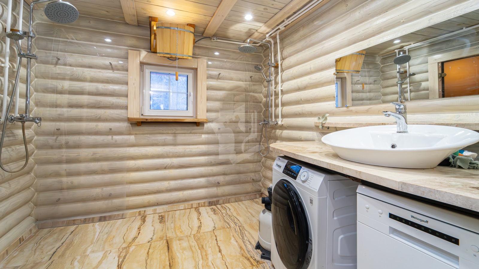 - Санузел: парная, душевые и туалет. Круглогодичное проживание — возможно.