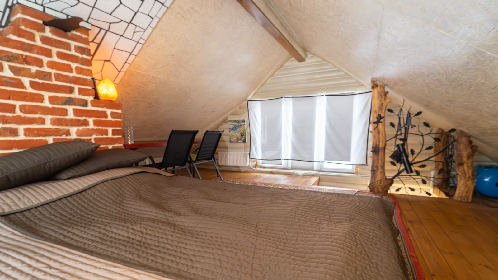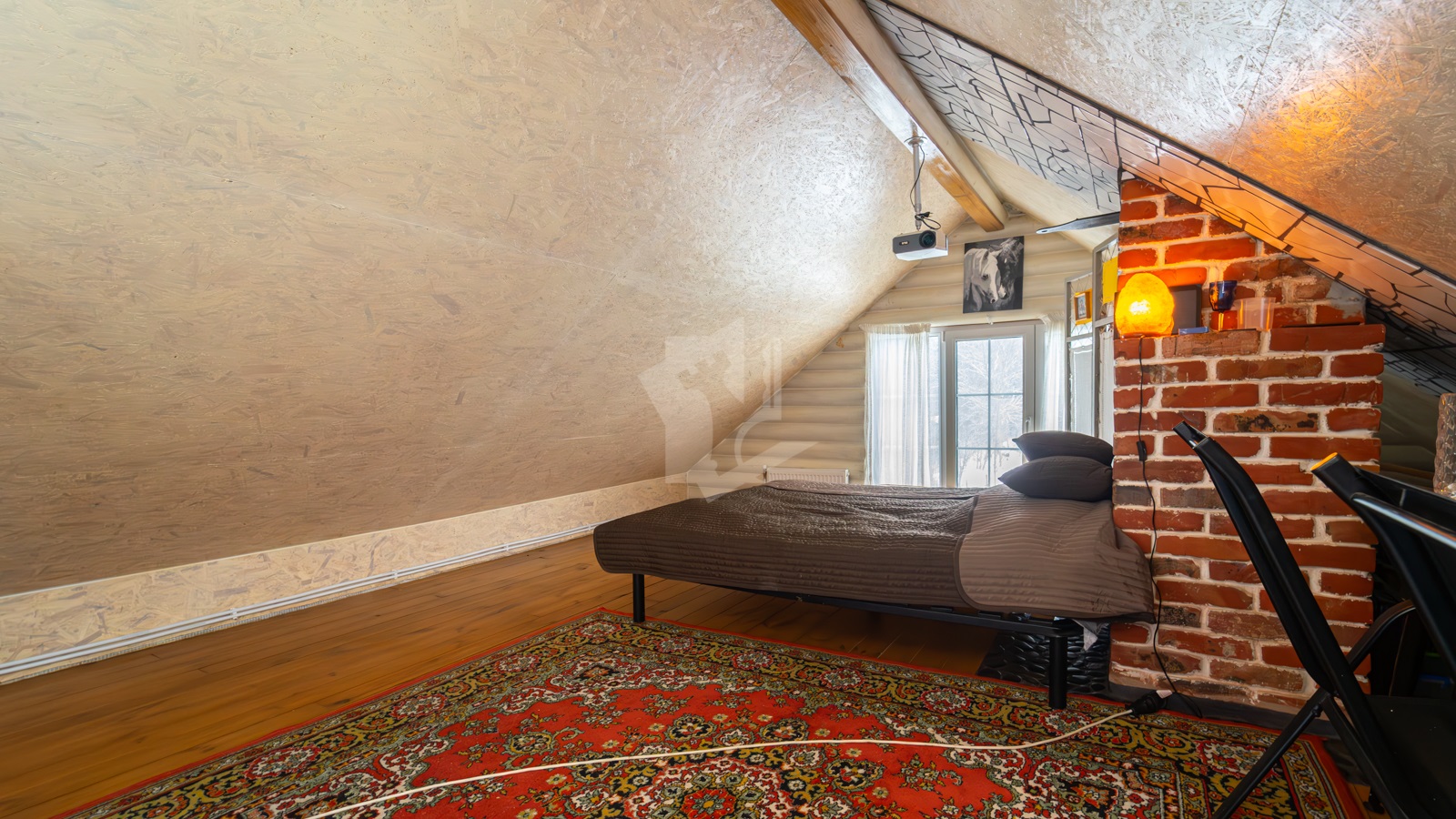- Мансардный тёплый этаж, окна ПВХ с ламинацией и зеркальными/защитными стеклопакетами.