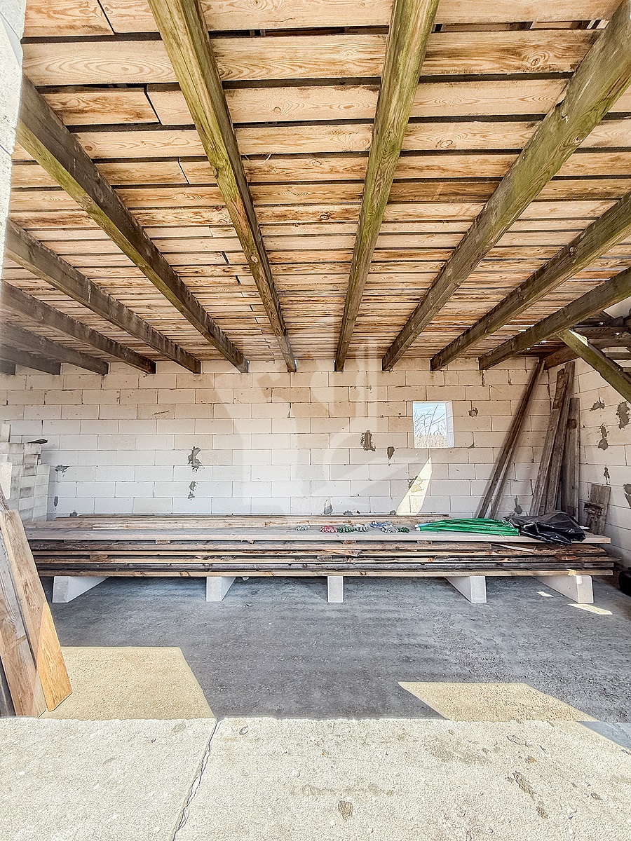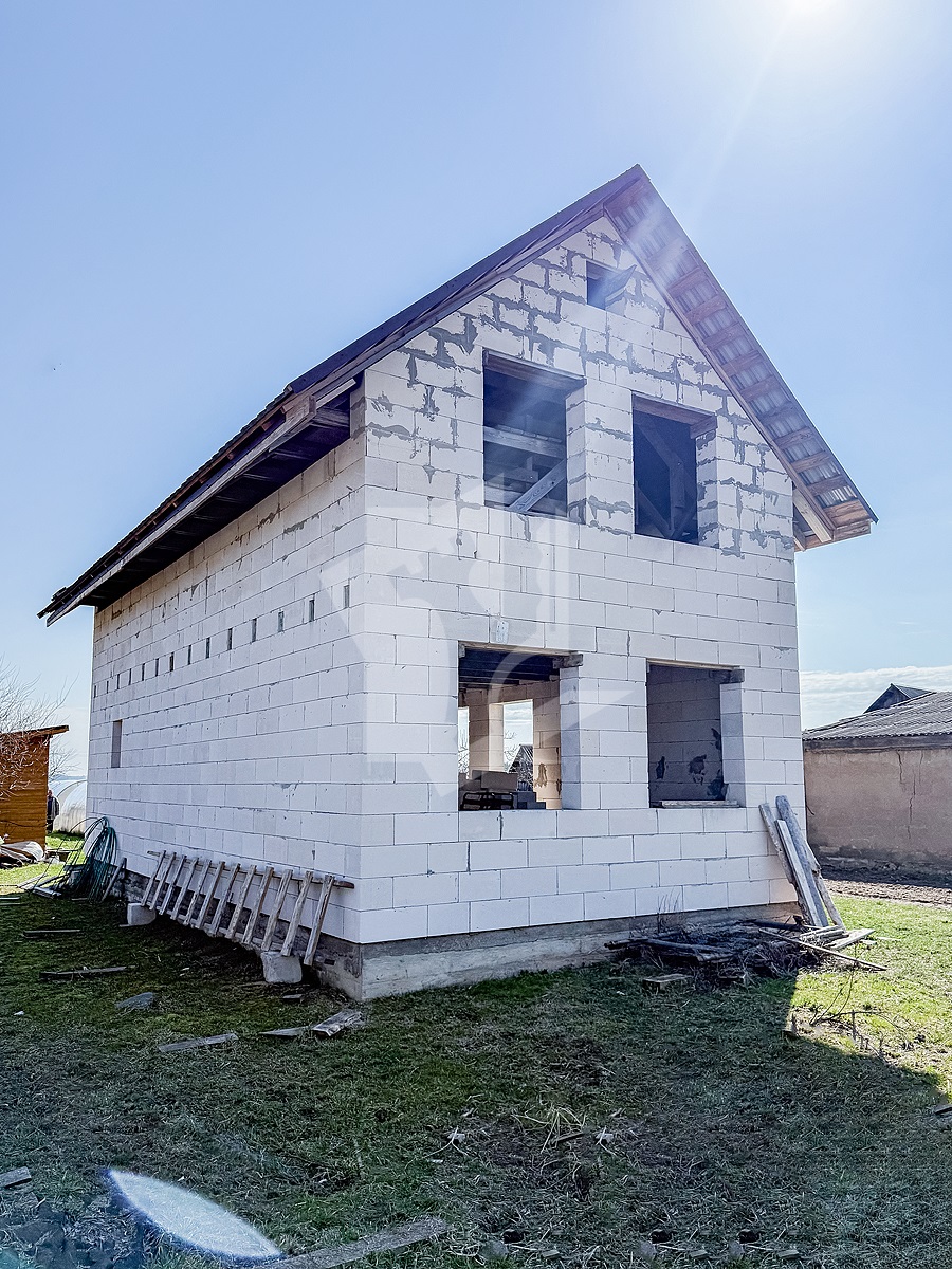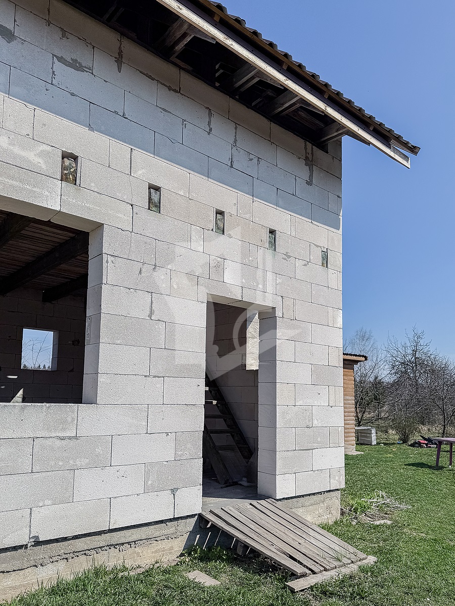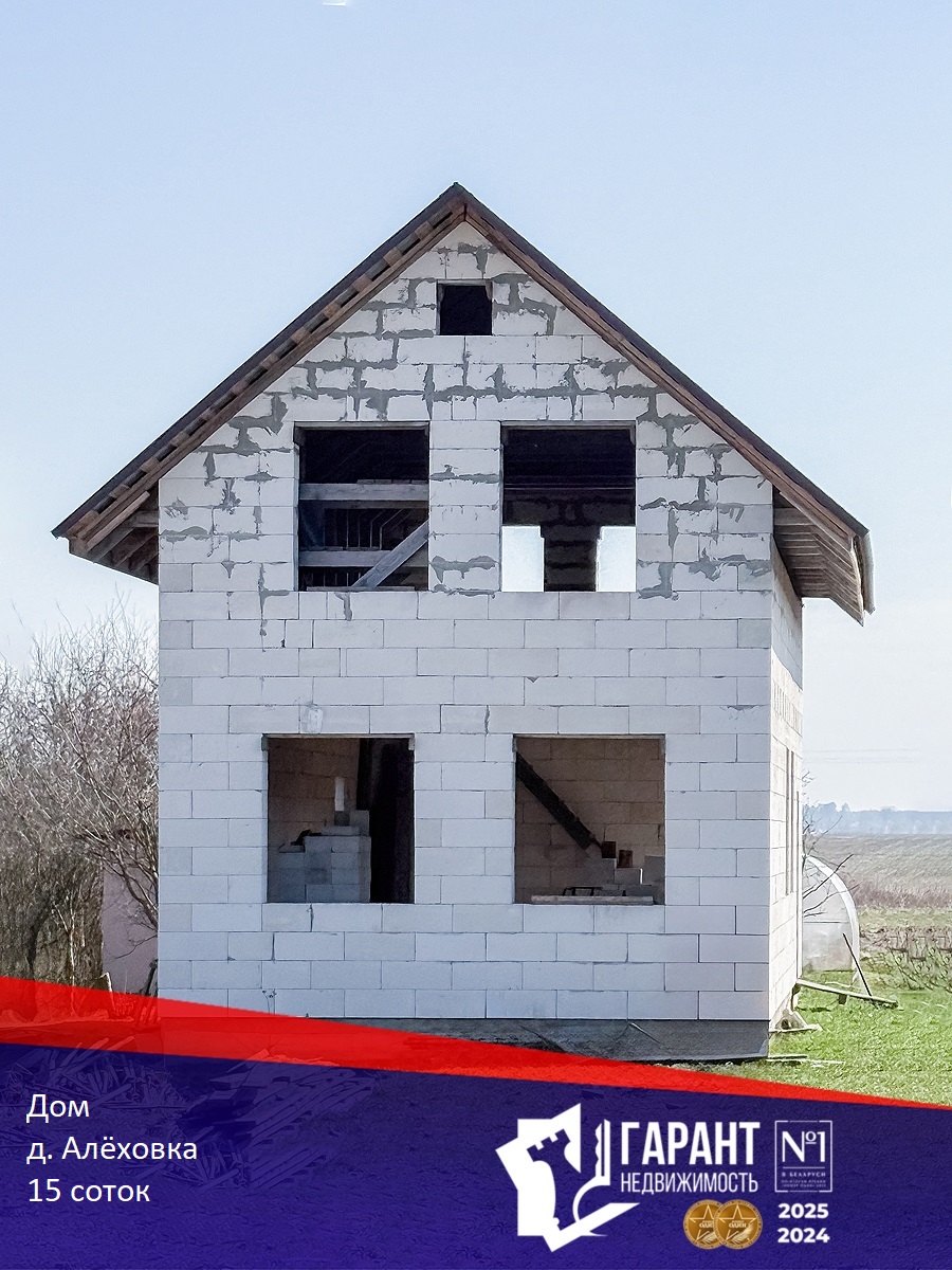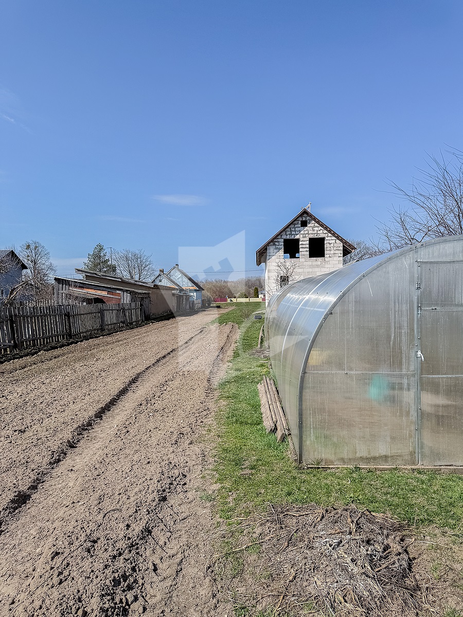 Встречайте — дом из газосиликатного блока под металлочерепичной крышей в деревне Алёховка. Здесь уже есть стены, крыша, вода из-под земли и два парника для вашего будущего рекордного урожая помидоров.