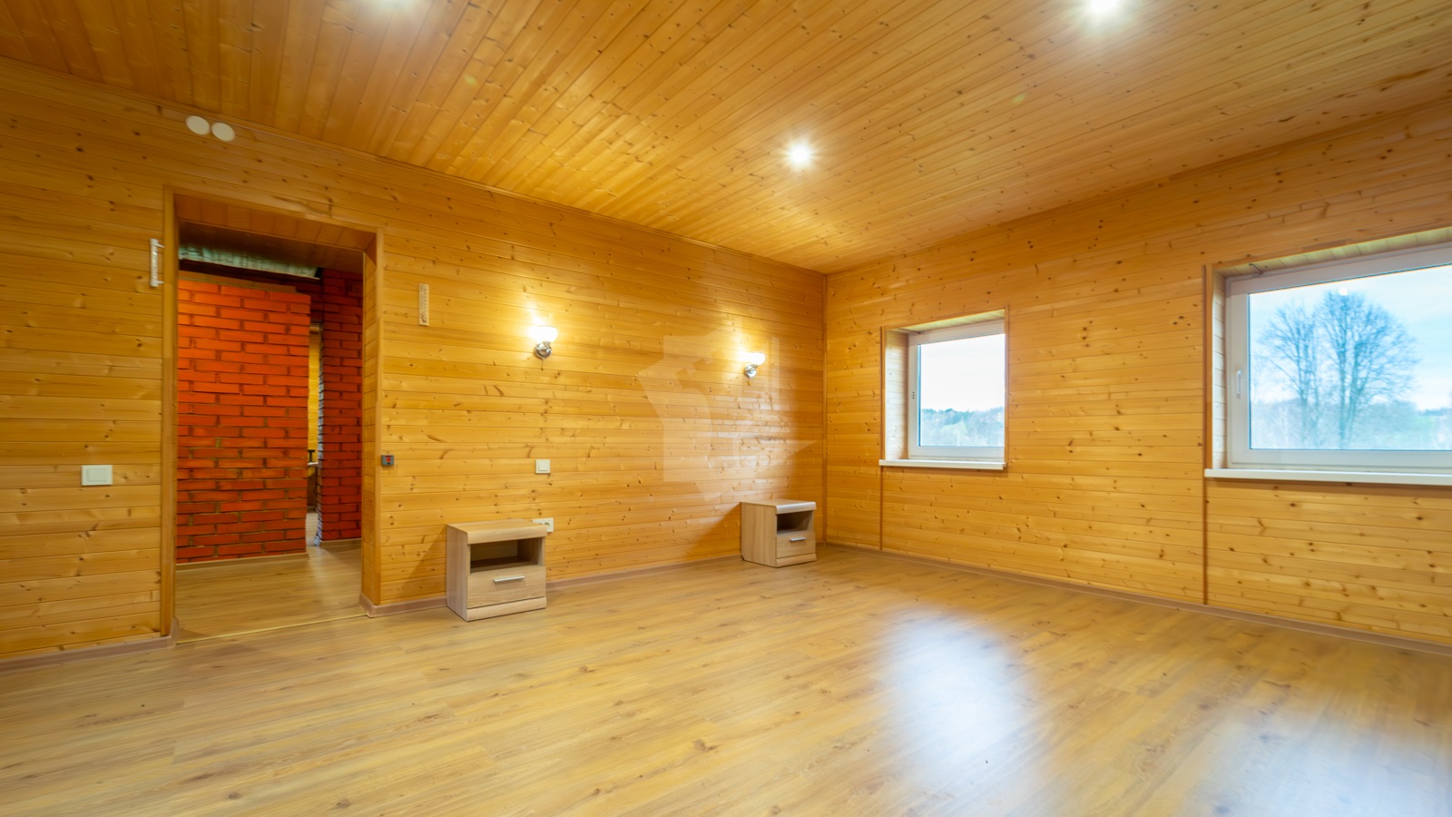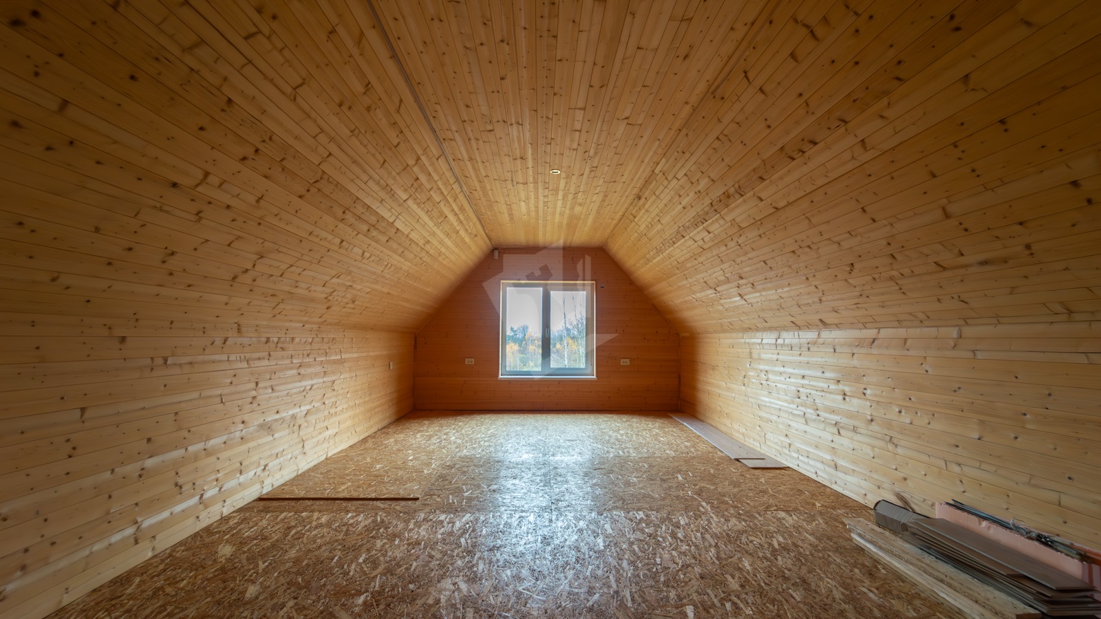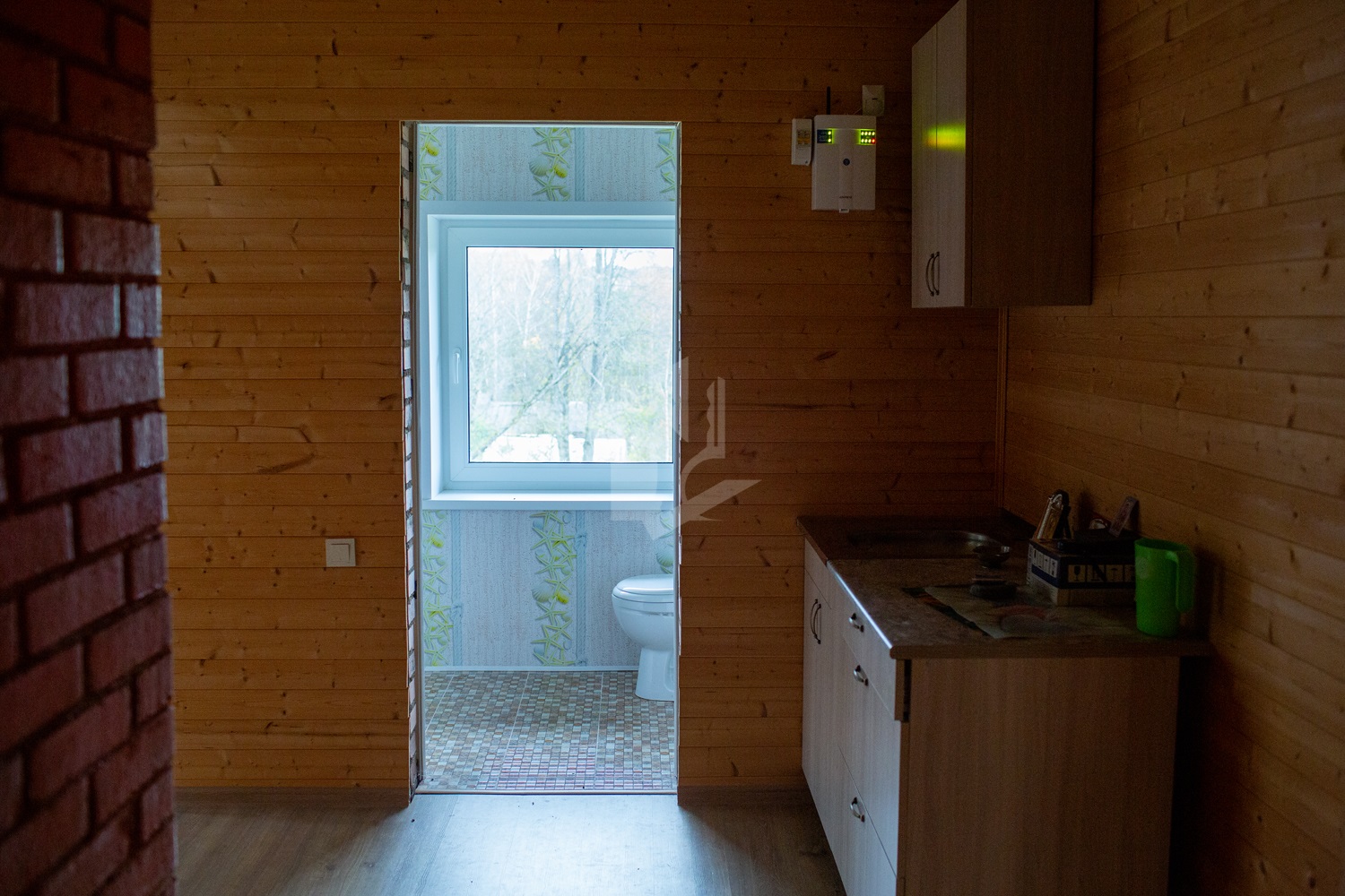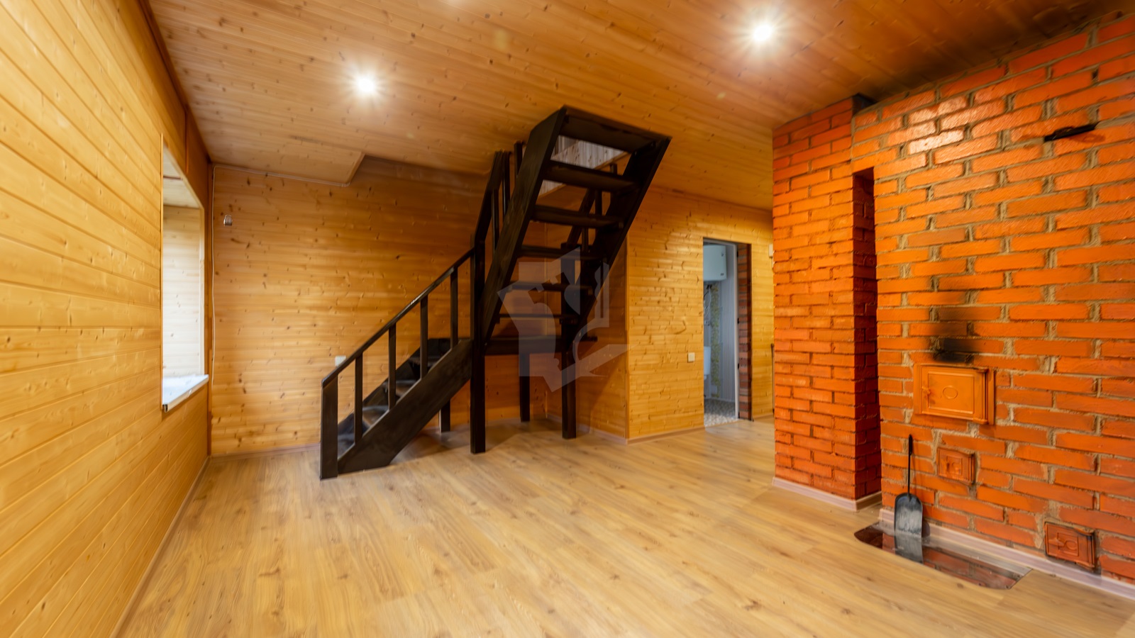 Второй этаж полностью готов для проживания, представляет собой две разделенные комнаты площадью 22,4 м2 и 25,4 м2. Здесь же имеется кухня, печь, завершенный санузел (3,5 м2) с унитазом, умывальником, бойлером для горячей воды и подготовленным местом для установки душевой кабины; на полу уложен ламинат.