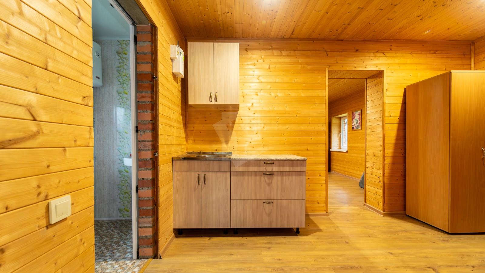 В доме остаётся сантехника, бойлер, шкафы, кухня, стол, спутниковая антенна НТВ+. Микроволновка и новенький холодильник – по договорённости.
