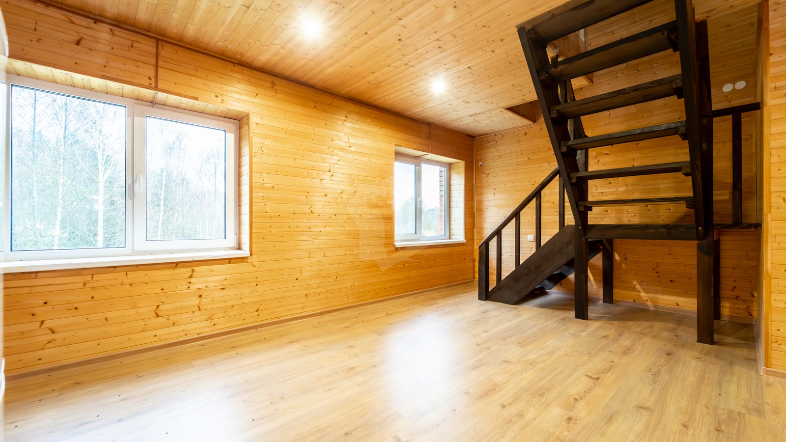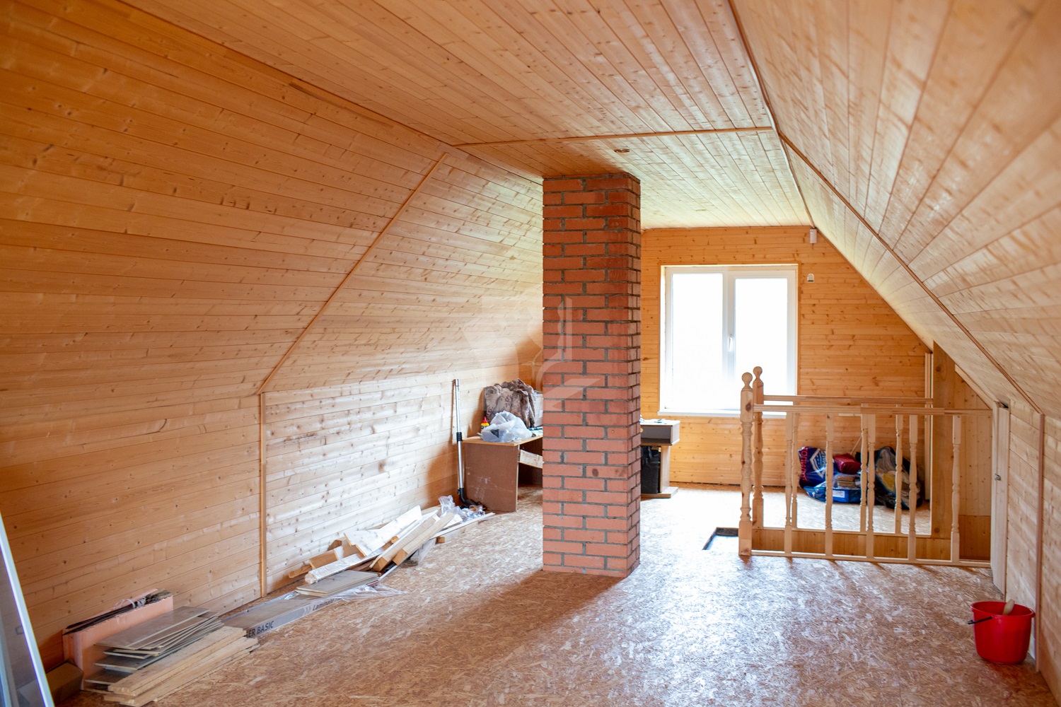 Третий этаж также готов для проживания, представляет собой большую комнату, площадью 40,1 м2 со свободной планировкой и с удобной большой деревянной лестницей с балясинами.
