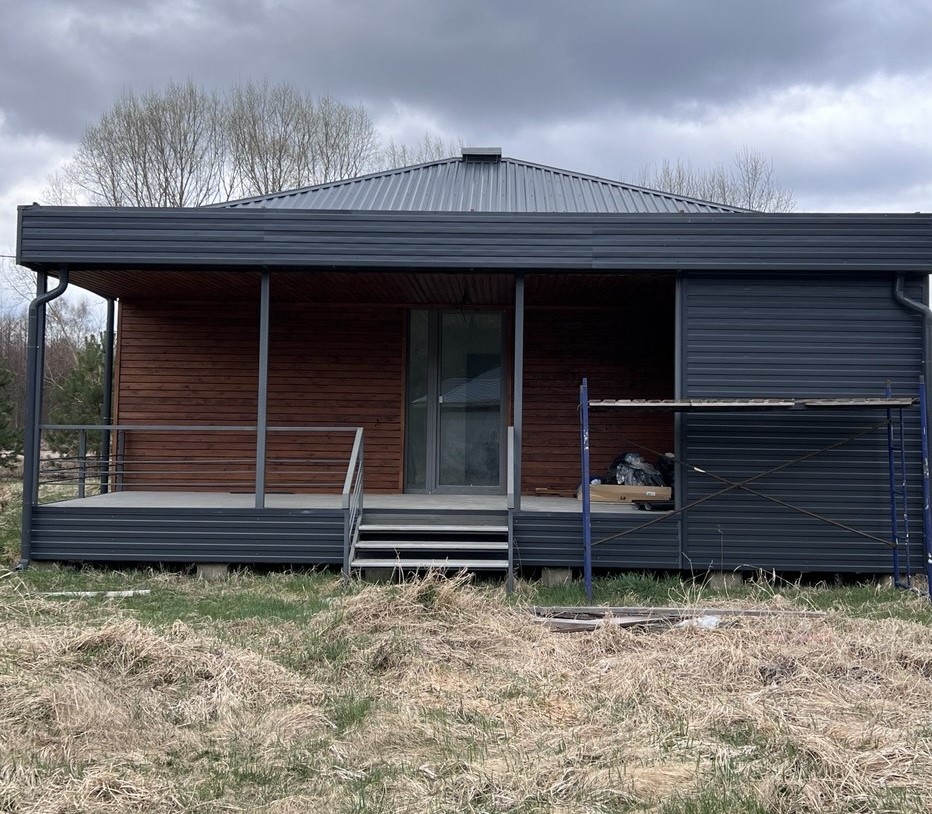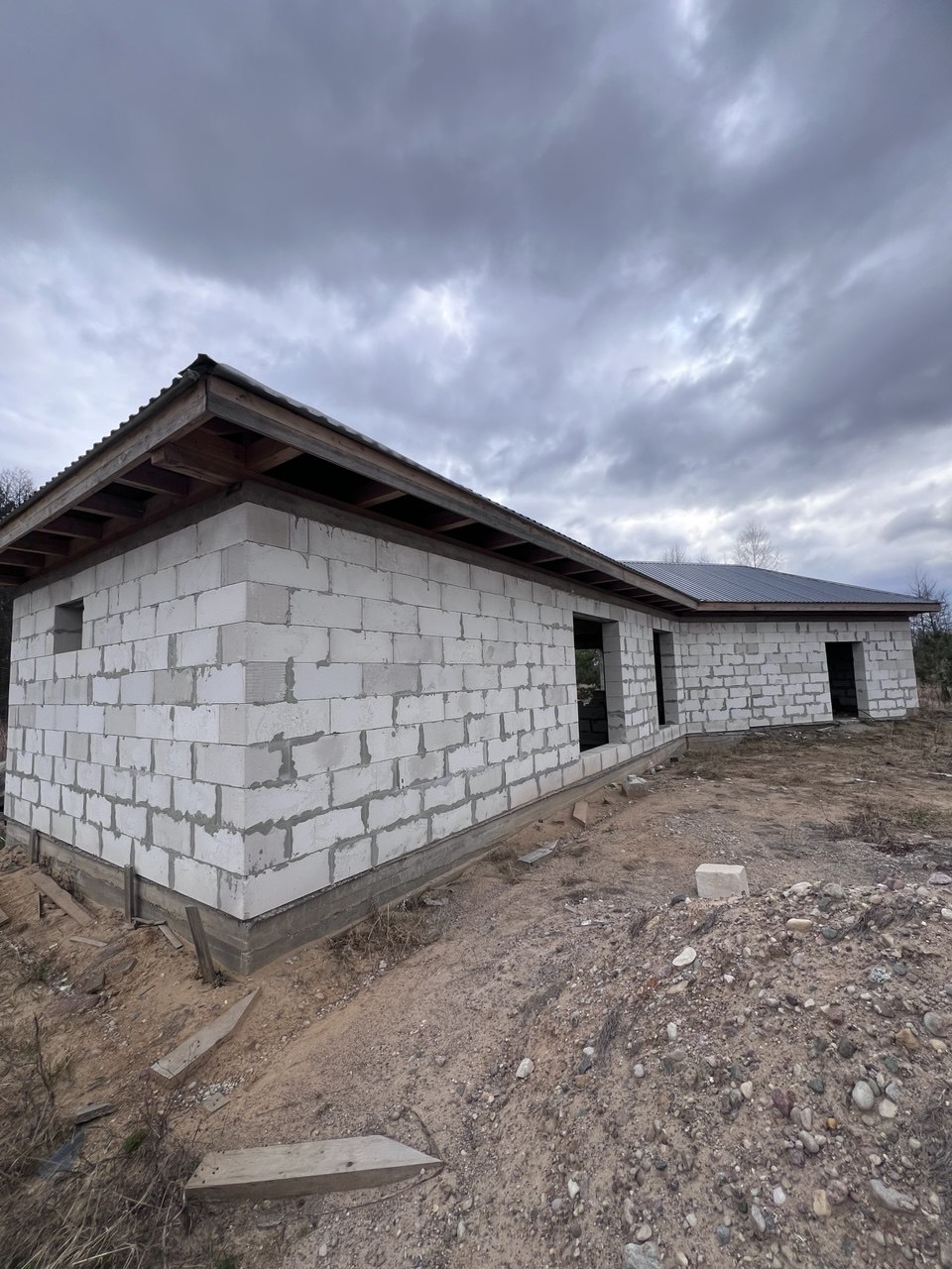 В процессе строительства — современная баня, которая станет вашим личным уютным уголком для отдыха и релаксации. А также гараж. Готова коробка, накрыты крышей, сделаны черновые потолки.