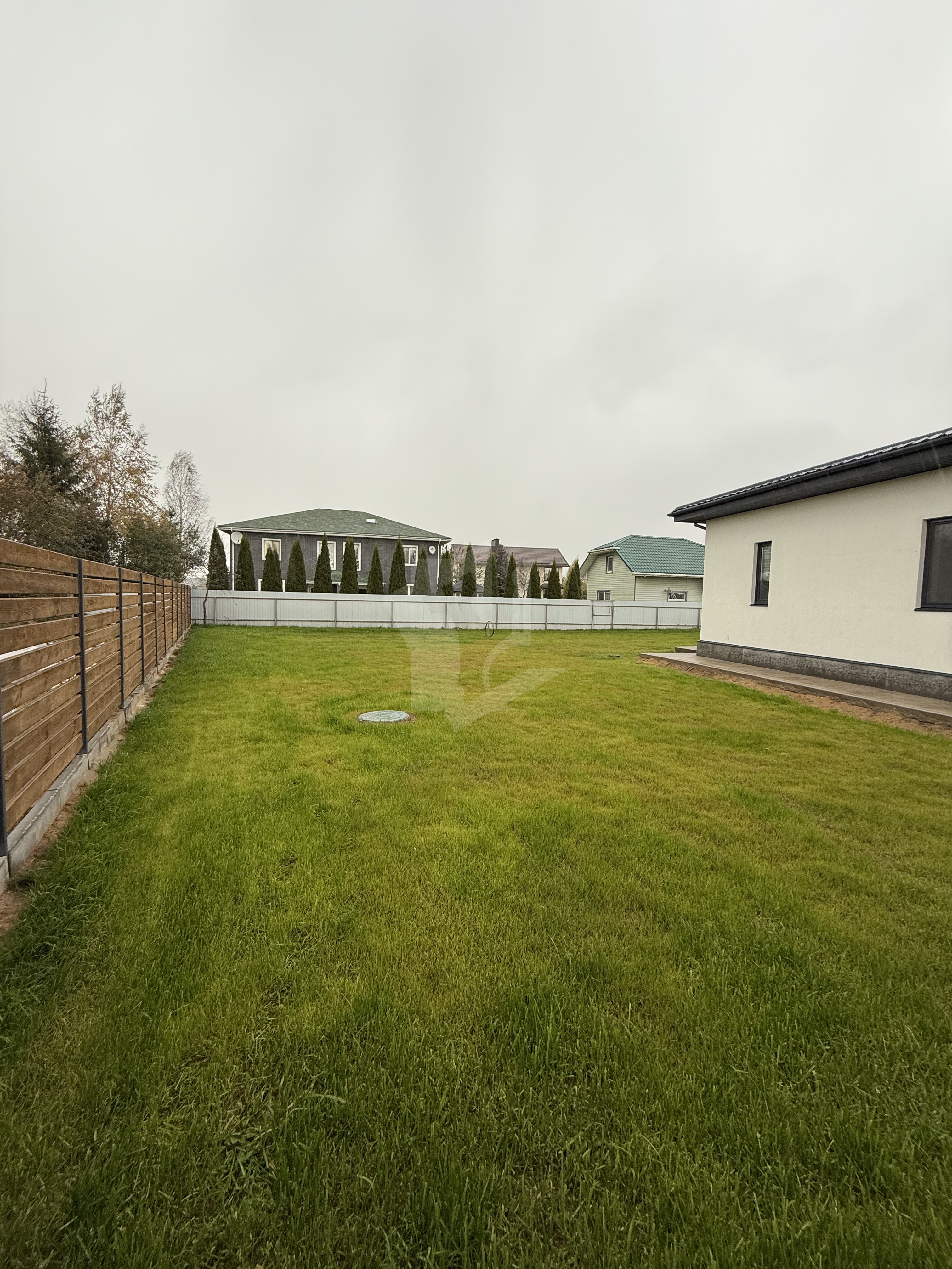 Участок ровный, прямоугольной формы площадью 10,5 соток, полностью огорожен качественным забором, въездные ворота автоматические откатные. По всему участку сделан дренаж. Асфальтированные подъездные пути прямо до участка. Участок крайний, соседи только с одной стороны
