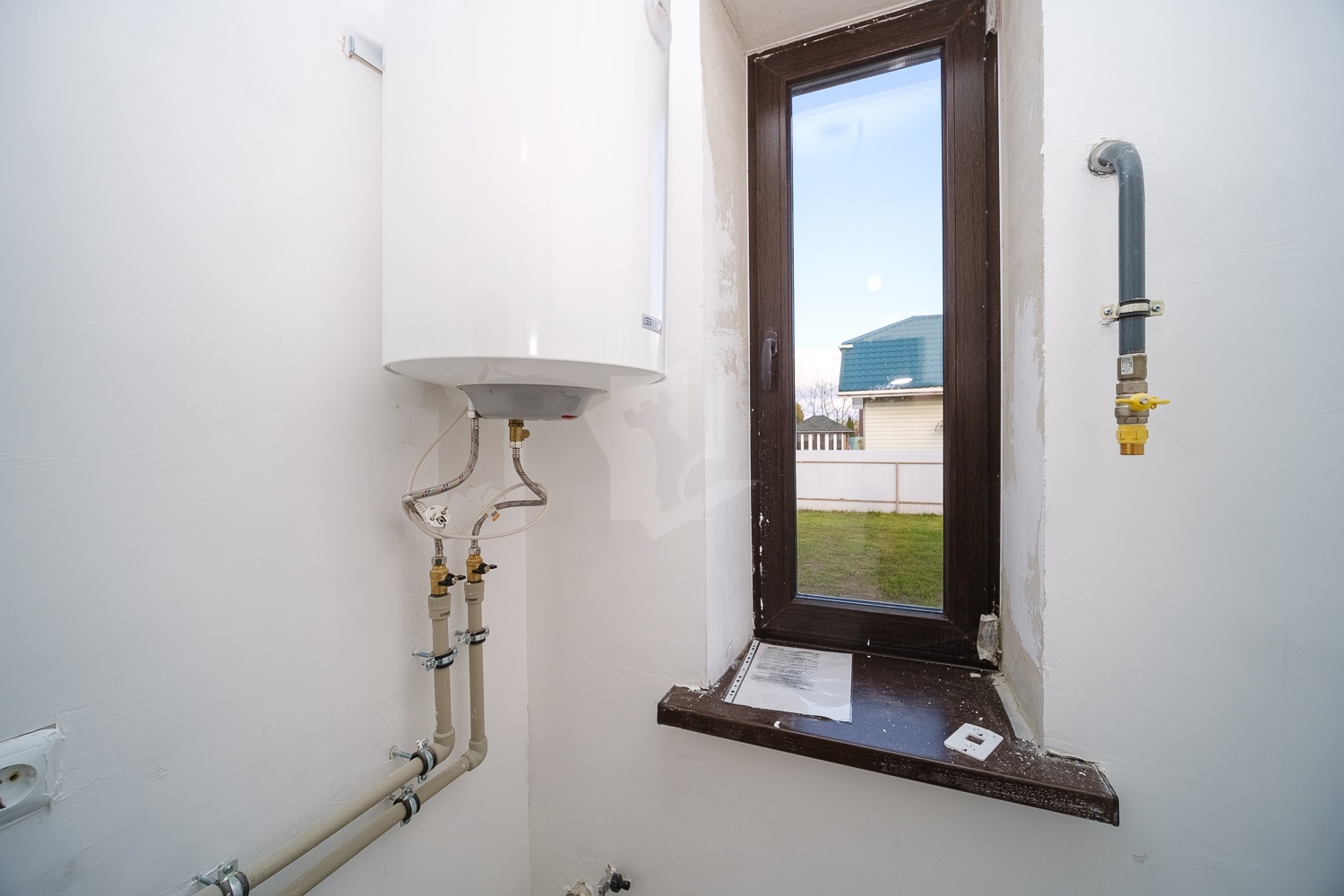 Газ введен в дом, сделан циркуль горячей воды, обустроены теплые полы. Центральное водоснабжение. Канализация местная.