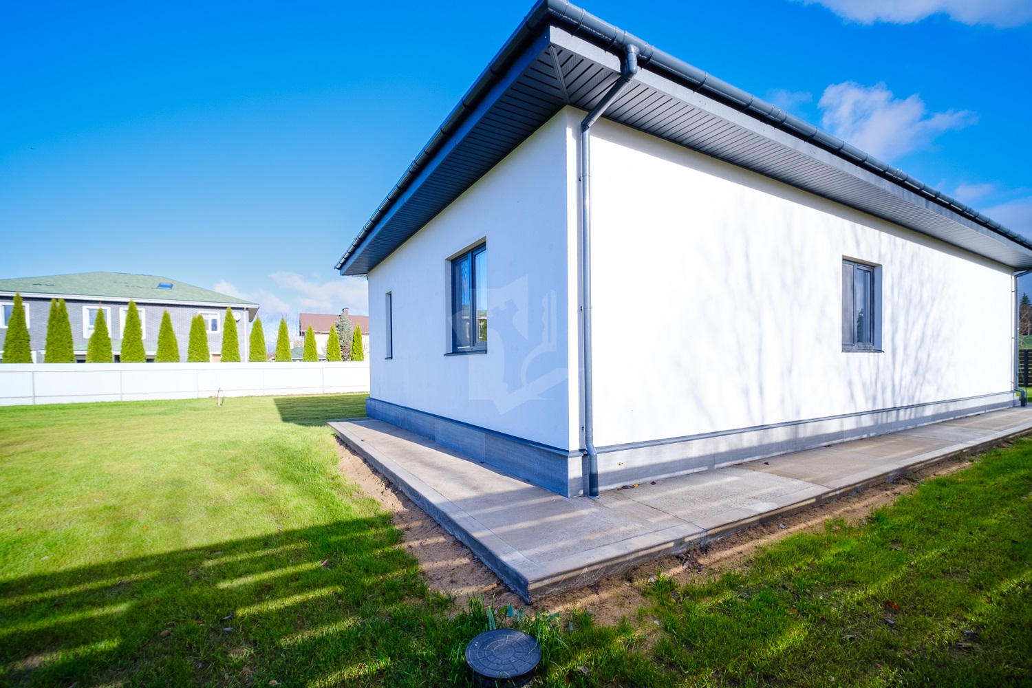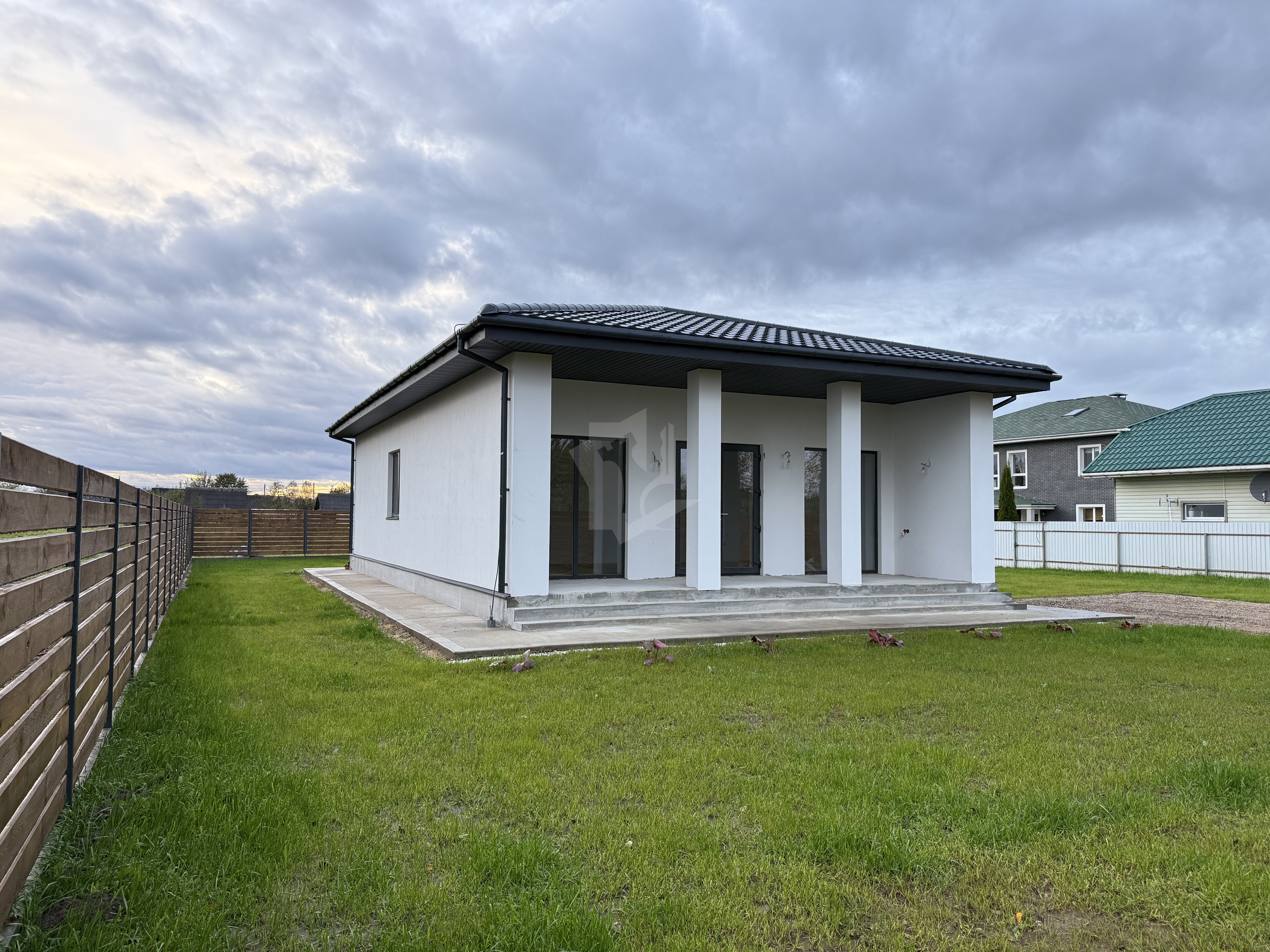 Дом одноэтажный с просторной кухней-гостиной с выходом на великолепную террасу, а также 2-мя большими спальнями. Готовый проект будет передан новому собственнику.