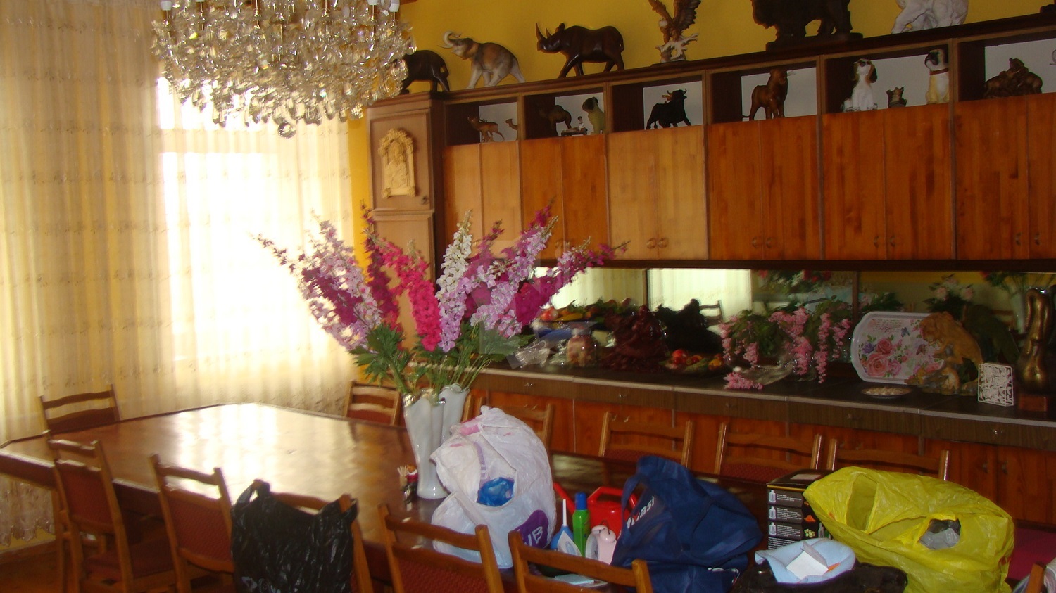 В доме есть свой бассейн, холл с бильярдом, зимний сад, зал охотника. Своя комната с библиотекой, рабочий кабинет, на каждом этаже свой камин, кухни, столовая, спальни, застекленные лоджии, свои сан. узлы и душевые комнаты.