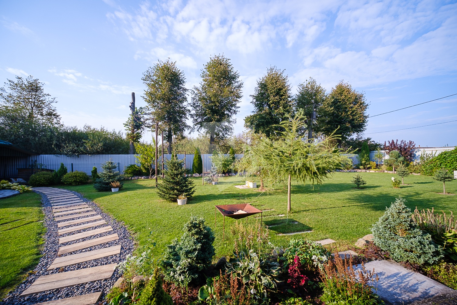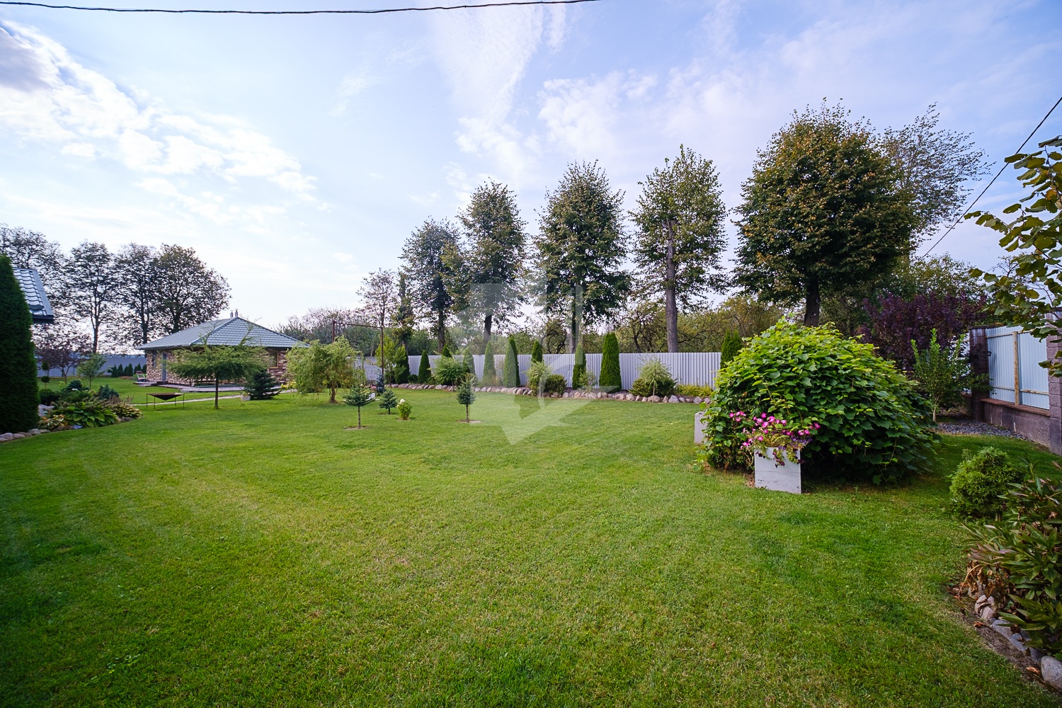 Большой шикарный благоустроенный участок площадью 25 соток в праве пожизненного наследуемого владения. Участок полностью огорожен, въездные ворота откатные с электроприводом. На участке имеется современная баня, оборудованная бассейном с джакузи и большой жилой комнатой с погребом, которая может использоваться в качестве гостевого домика. Есть просторный гараж с крытым навесом для хранения автомобиля, оборудованный постом для зарядки электромобиля. На участке выполнен ландшафтный дизайн и посажен сад с плодовыми деревьями и кустарниками.