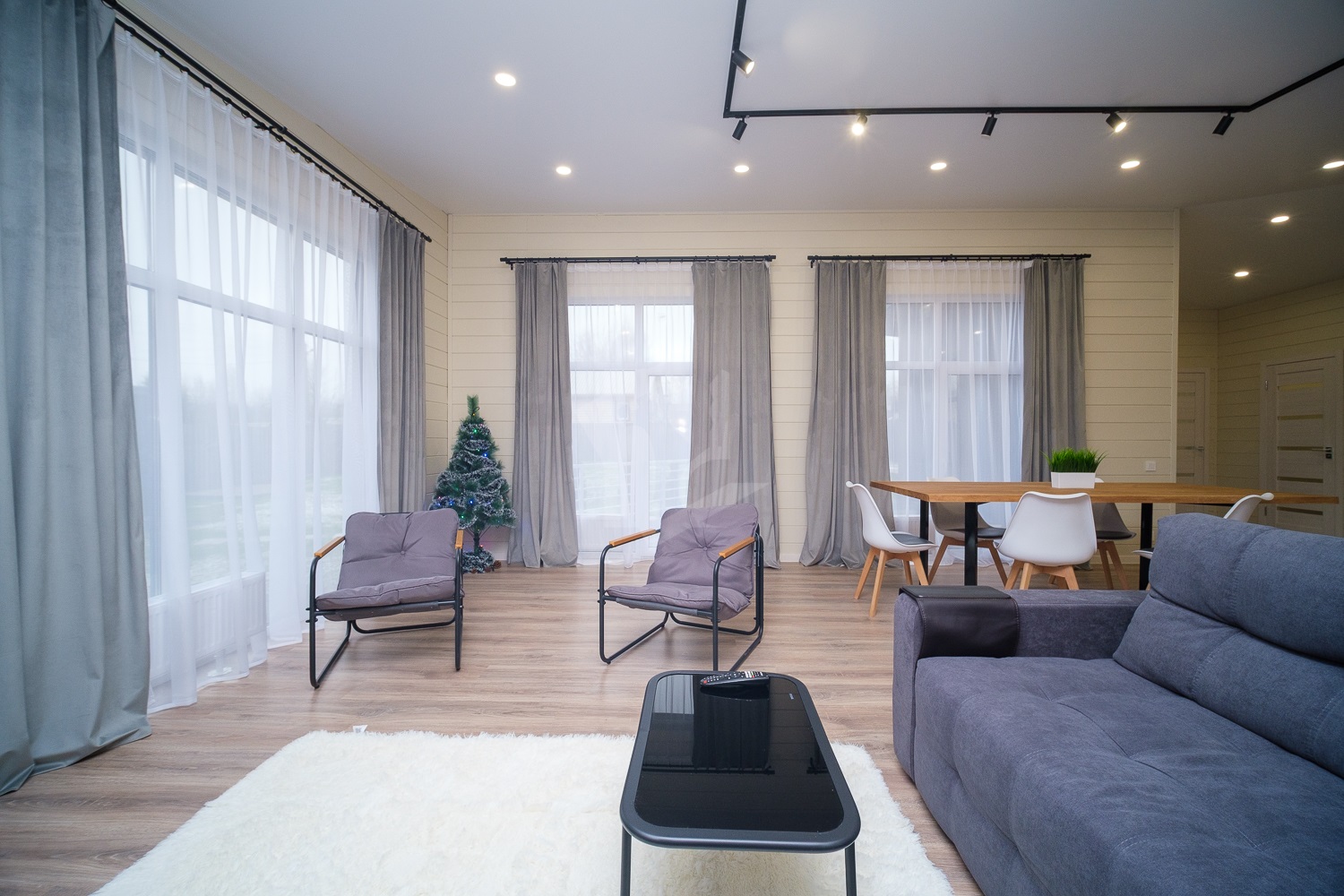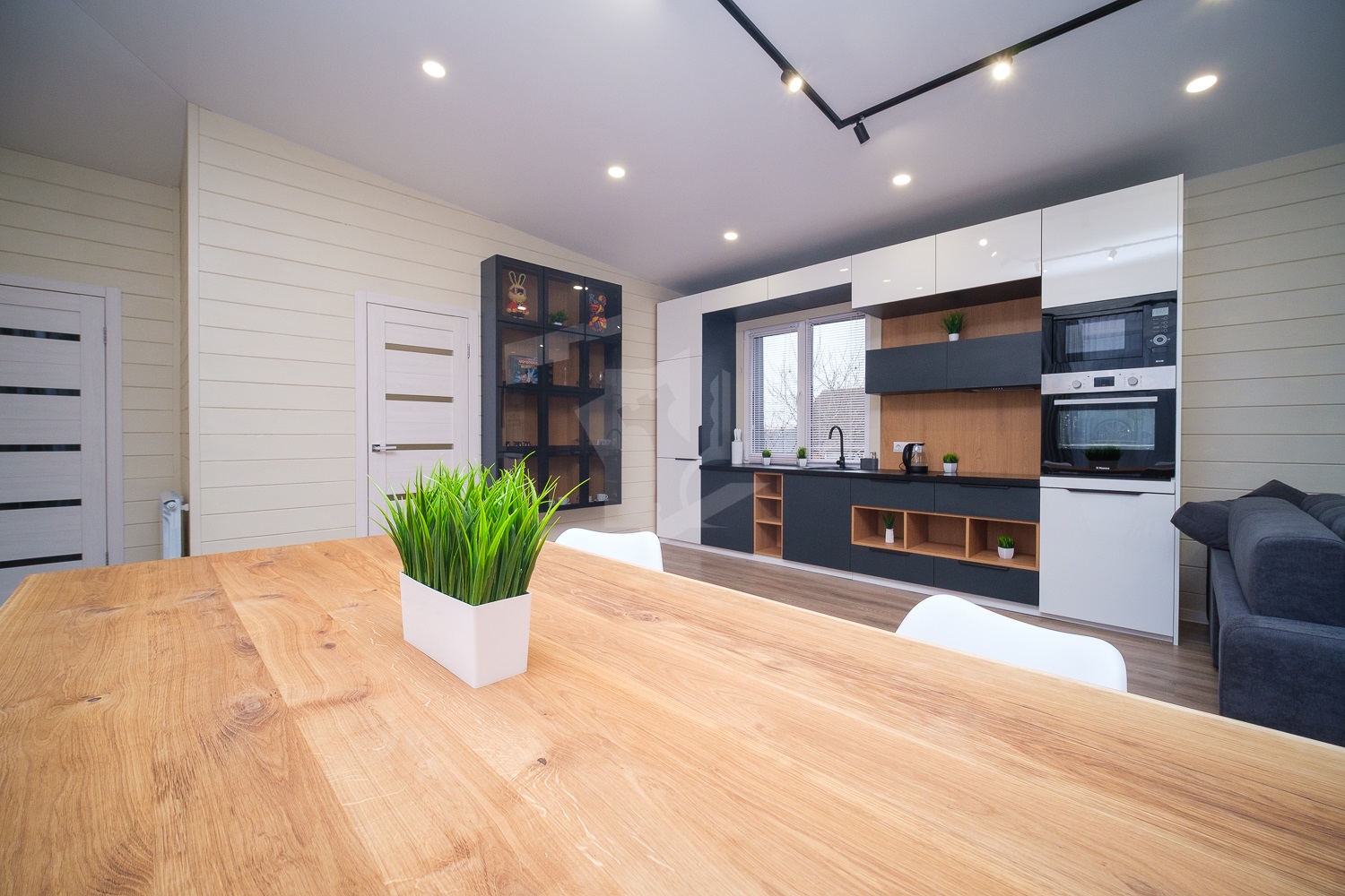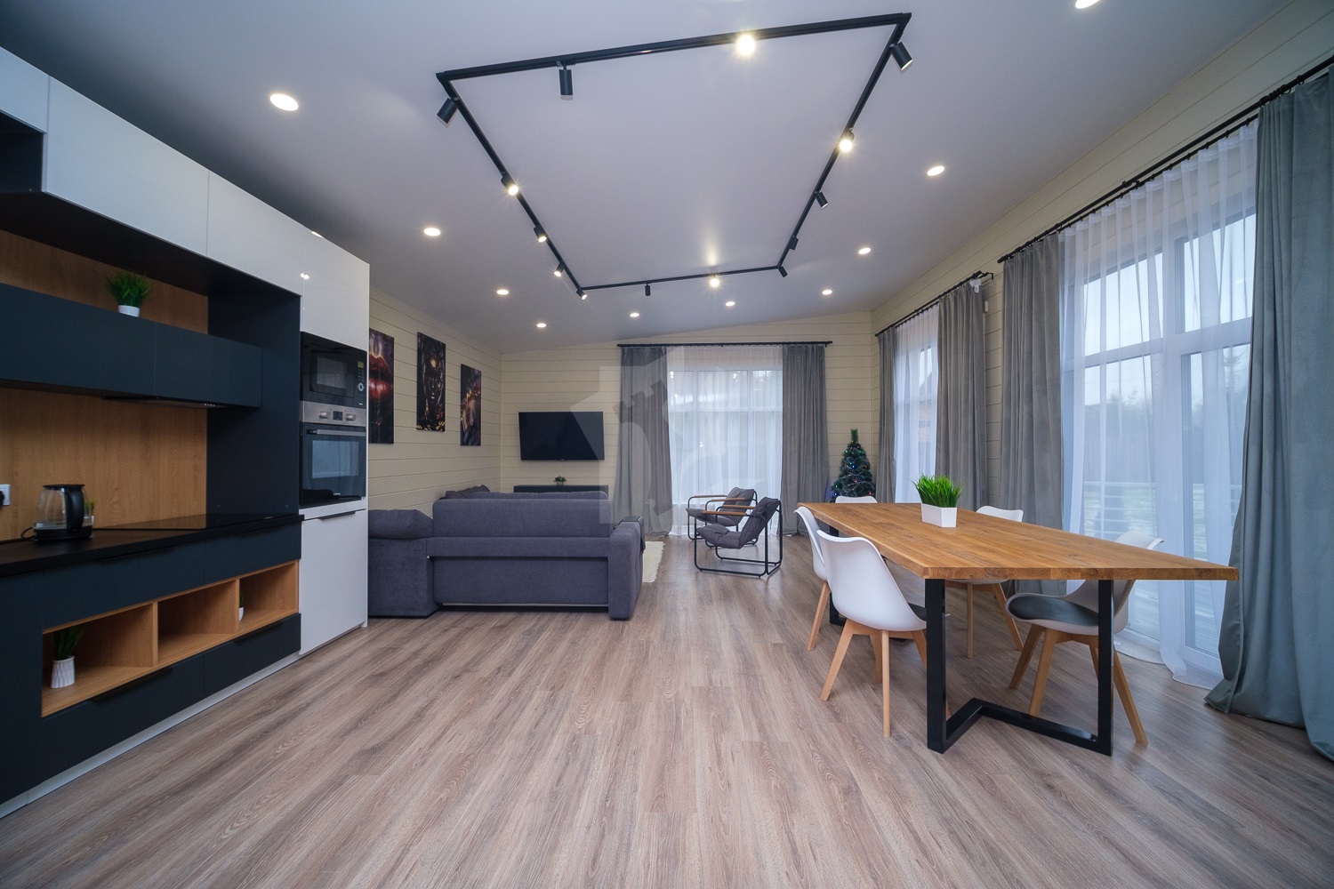 Мы ценим ваше время. Дом полностью меблирован дизайнерской мебелью, оснащён качественной бытовой техникой (она остаётся новым владельцам!) и всем необходимым для комфортной жизни — никаких хлопот с ремонтом и обустройством.