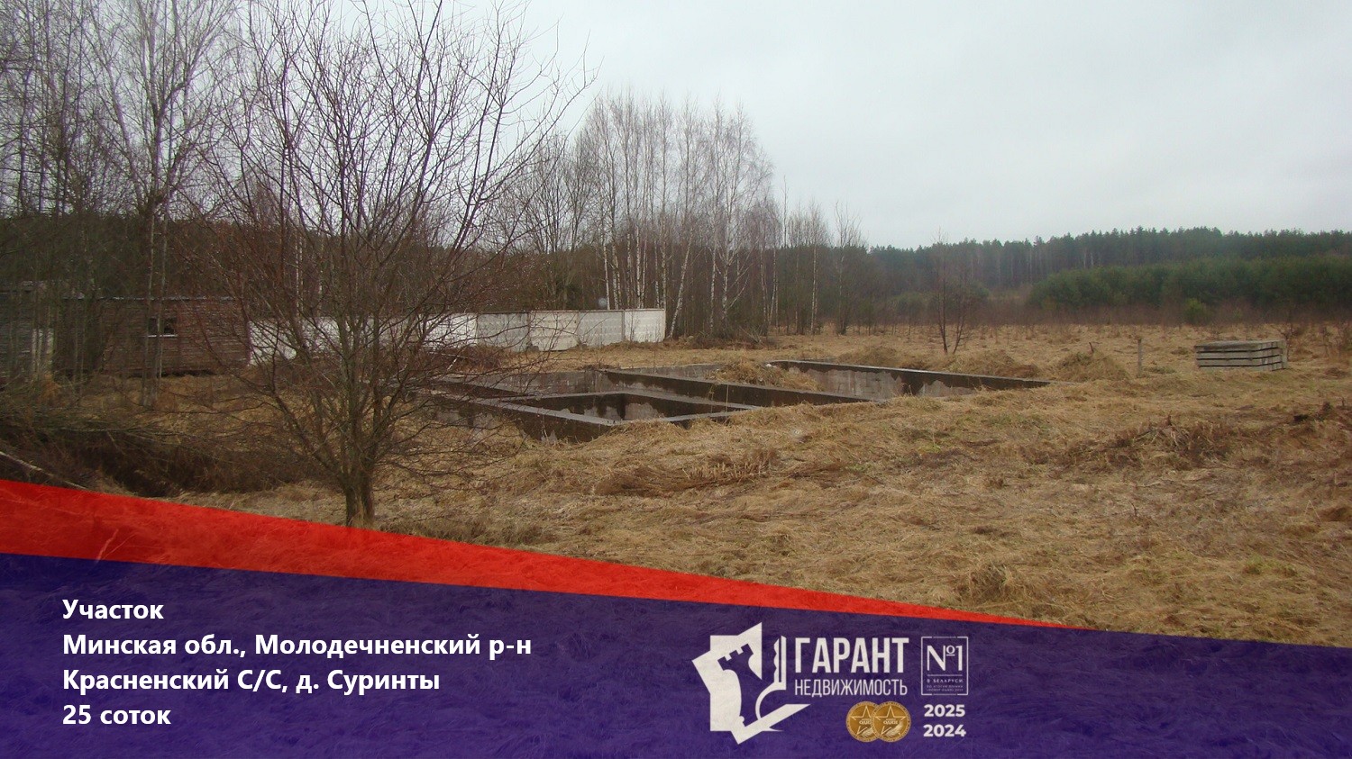 Продается участок 25 соток в частной собственности в д. Суринты хуторского типа. Деревня в сосновом лесу, в экологически чистом месте, большой участок в форме ромба, соседей нет вокруг лес. На участке залит фундамент для дома, свайно-ростверковый с качественного бетона с металлом внутри.