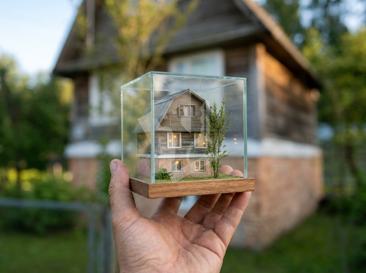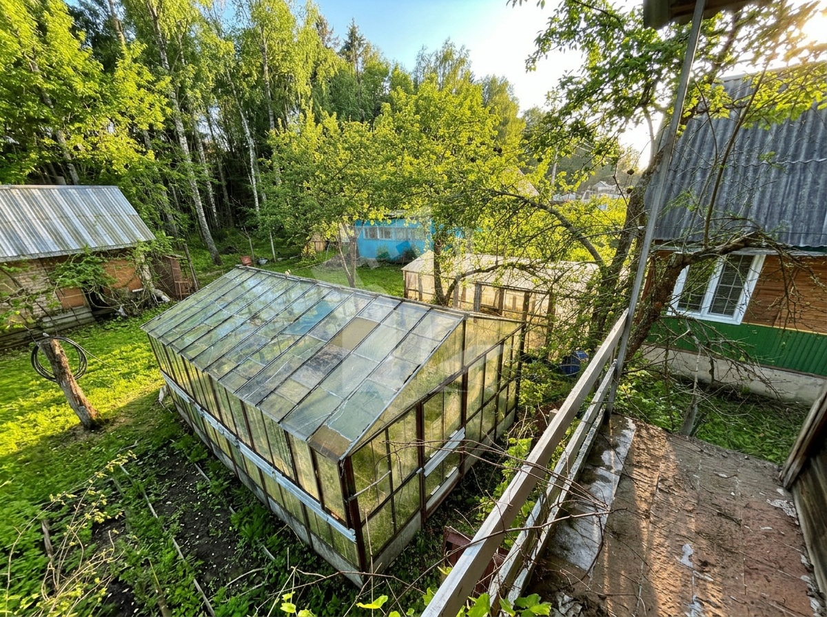 · Зеленый участок: Рядом с дачей находятся обилие зеленых насаждений, а также баня и стеклянная теплица.