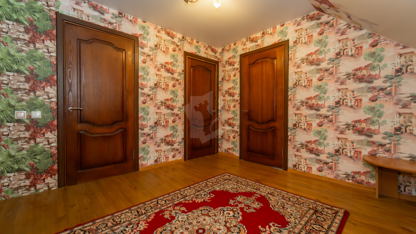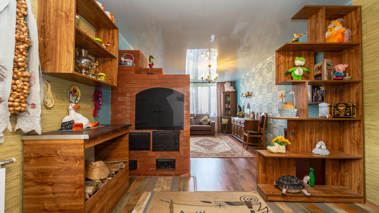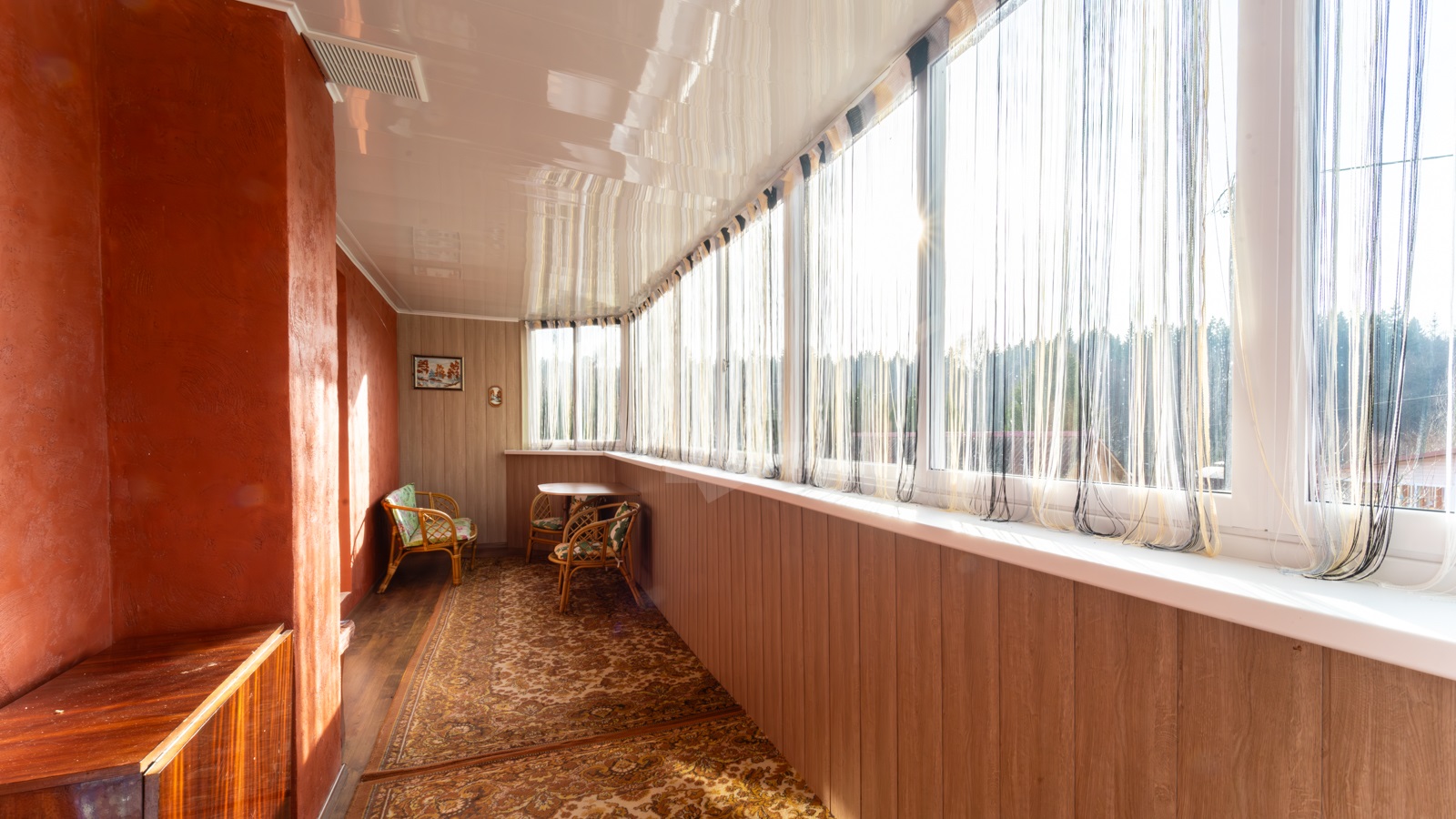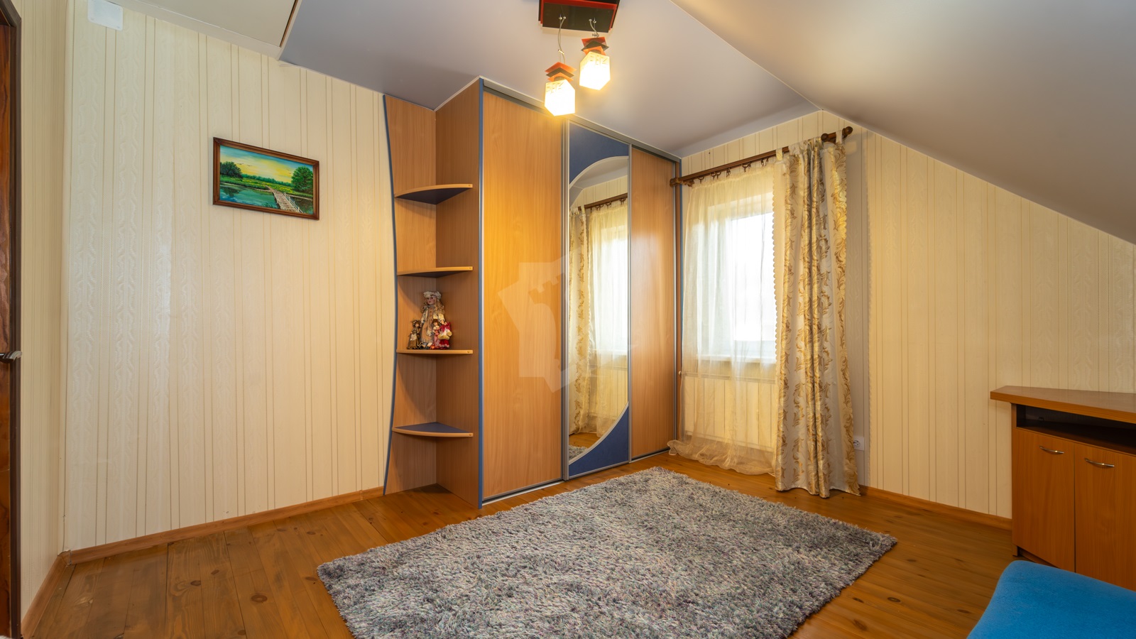 - На участке расположен жилой дом, прочный и тёплый для постоянного проживания. В доме 5 жилых комнат, 2 санузла, просторная кухня-гостиная с классическим камином. Здесь же выход на большую благоустроенную лоджию. На первом этаже в просторной студии расположилась настоящая русская печь с лежанкой. Топится дровами, греет душу и тело, как в лучших славянских традициях. В доме остается мебель и бытовая техника.