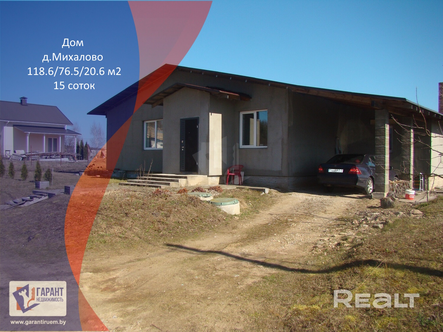 Одноэтажный современный дом для семьи площадью 118м2, + 15 соток земли в пожизненно наследуемое владение. Участок ровный правильной формы, огорожен с трех сторон сеткой.