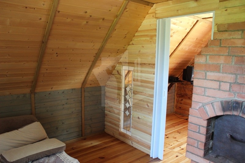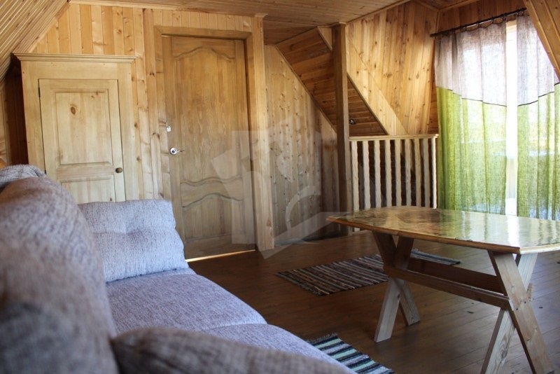 • В доме есть две жилые комнаты и мансарда, куда входят еще две жилых комнаты и просторный балкон с видом на озеро